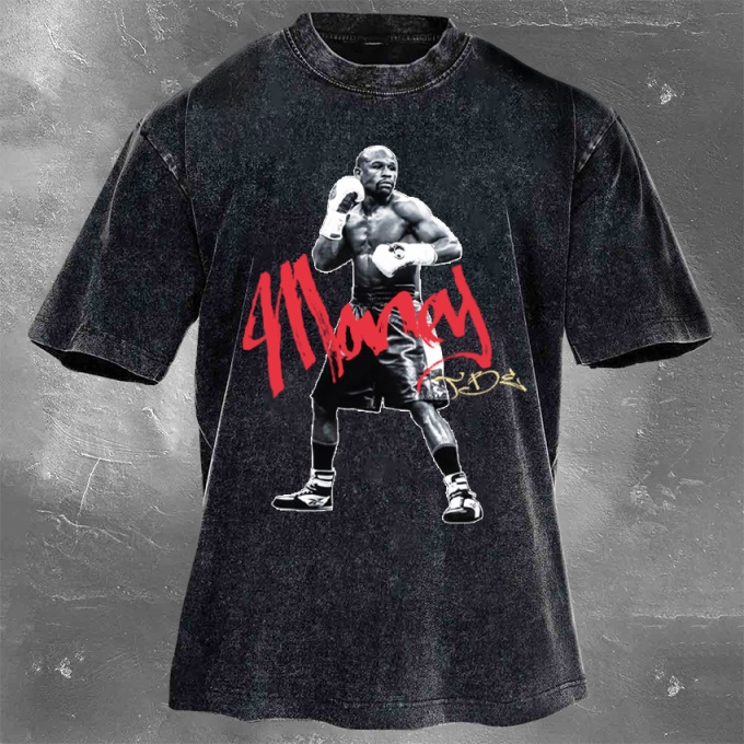 Street Fitness Boxing Print Washed Vintage Short Sleeve 05