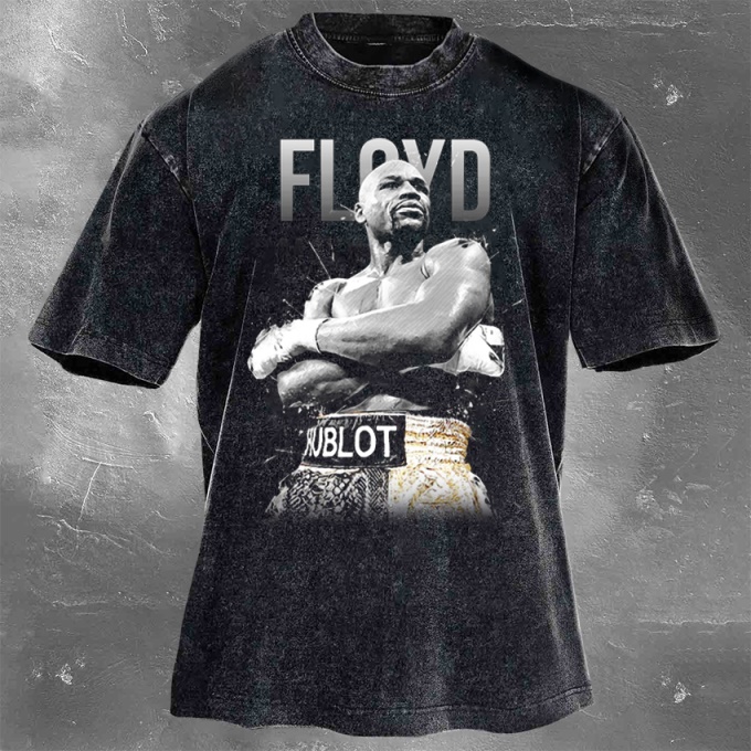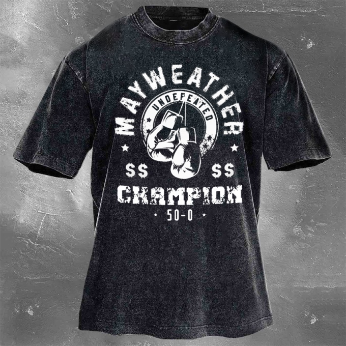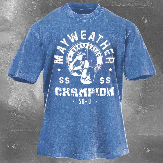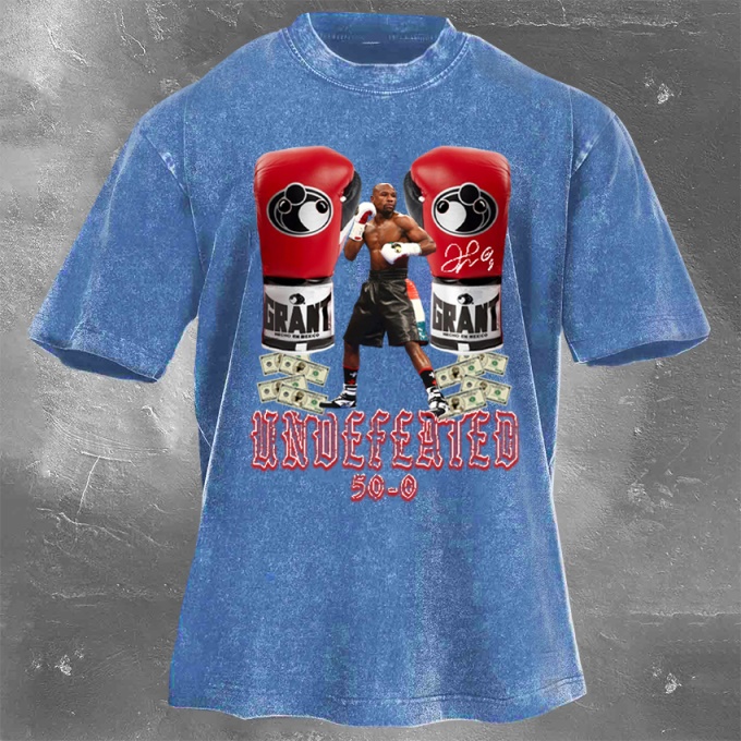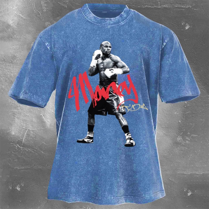 Street Fitness Boxing Print Washed Vintage Short Sleeve 04