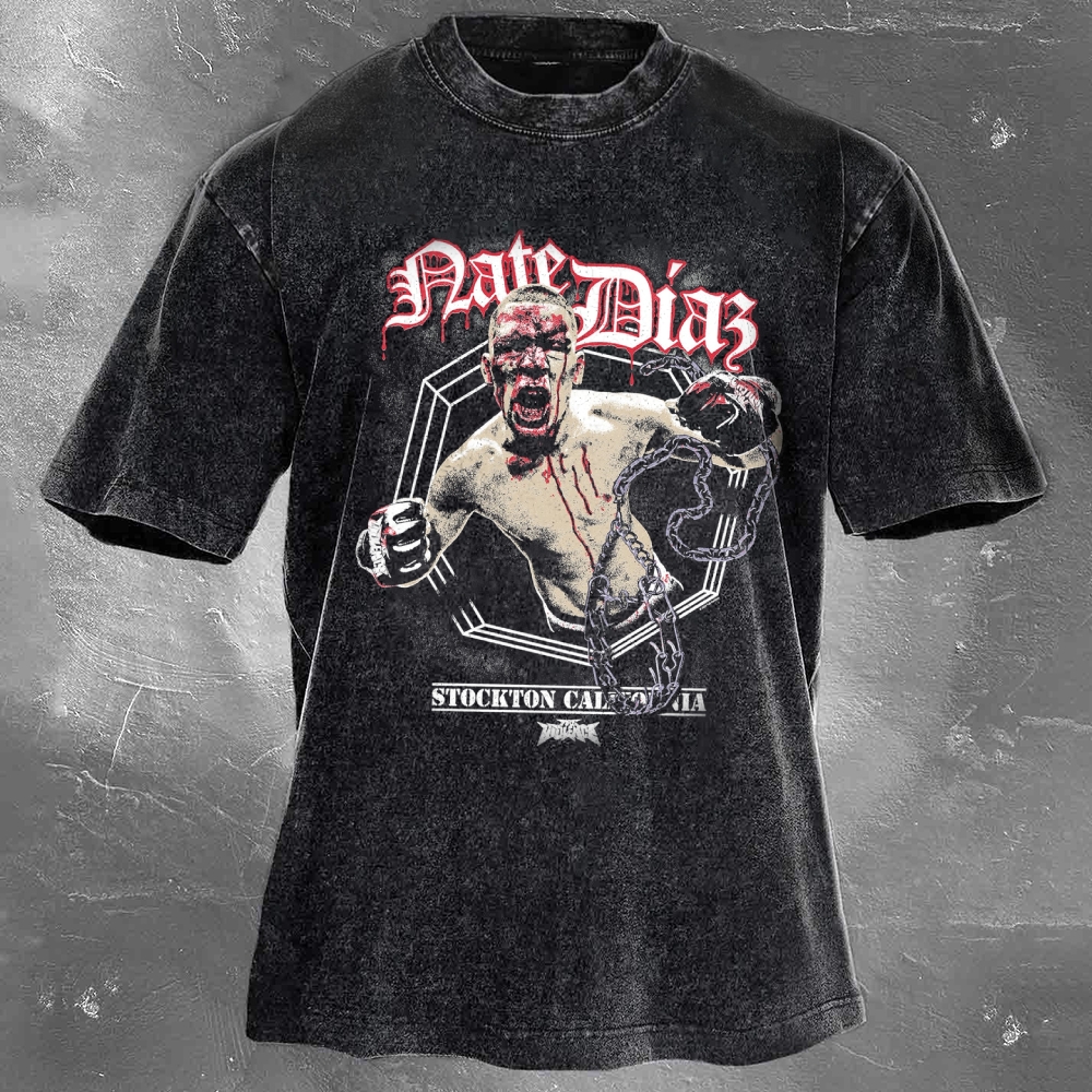 Ultimate Fighting Game Popular Star Print Washed Retro Casual T-Shirt 01