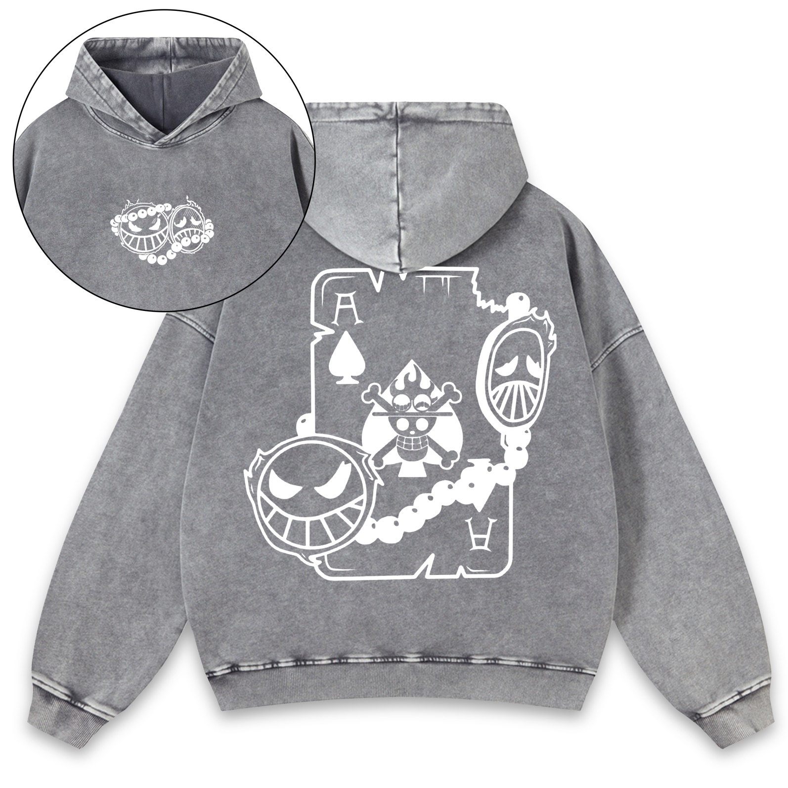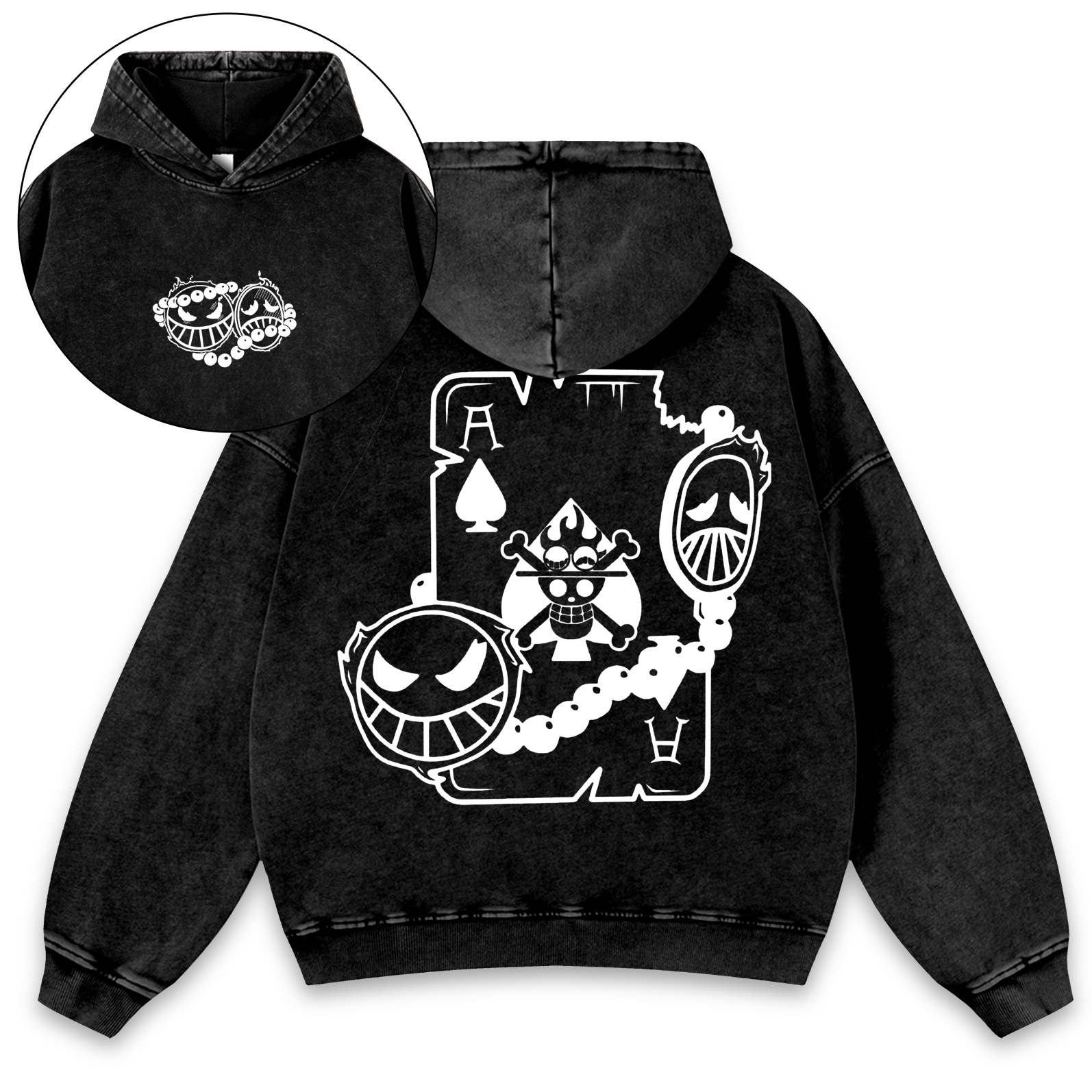 Classic Anime Character Print Washed Vintage Hoodie 07
