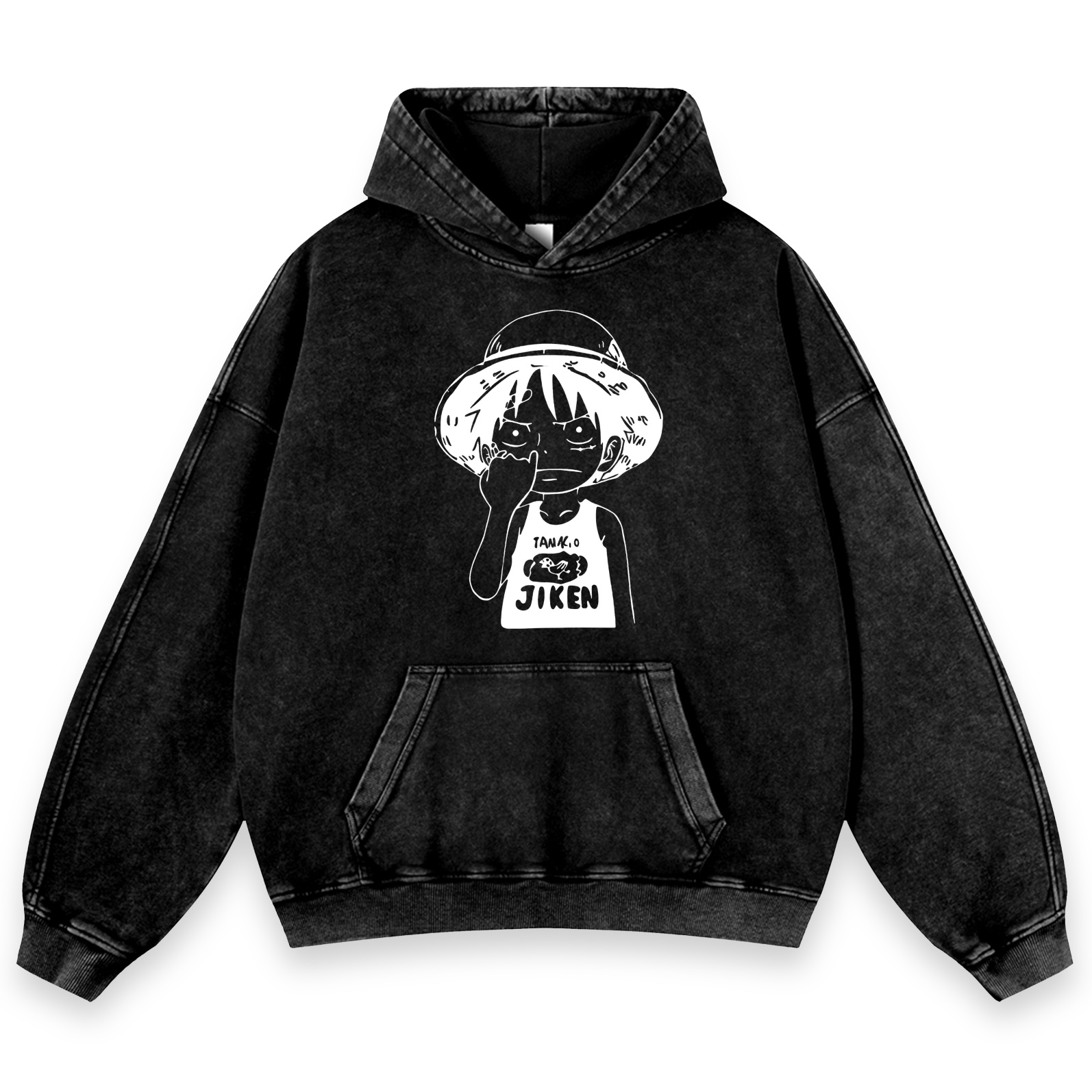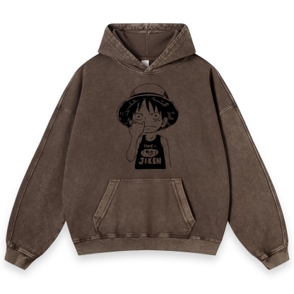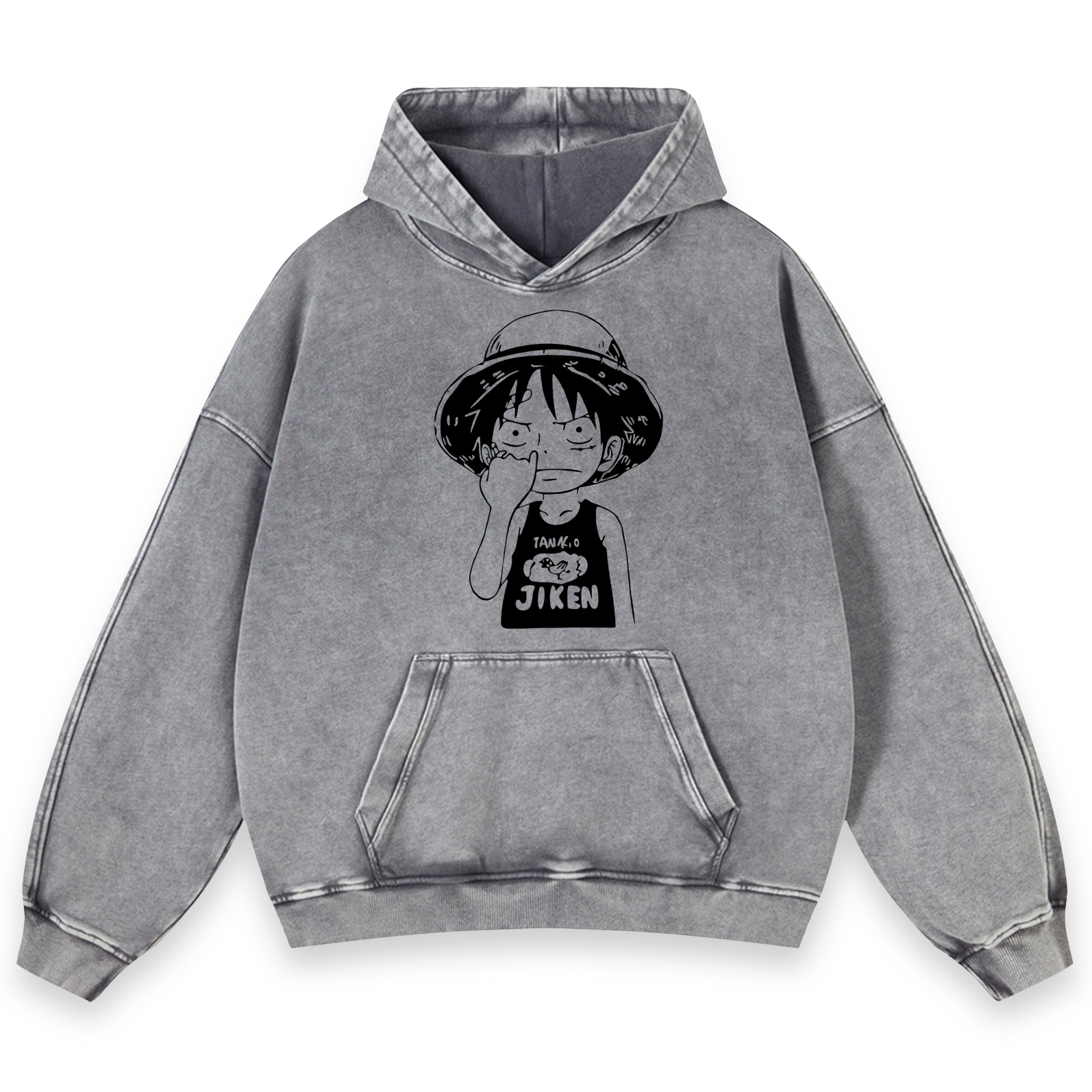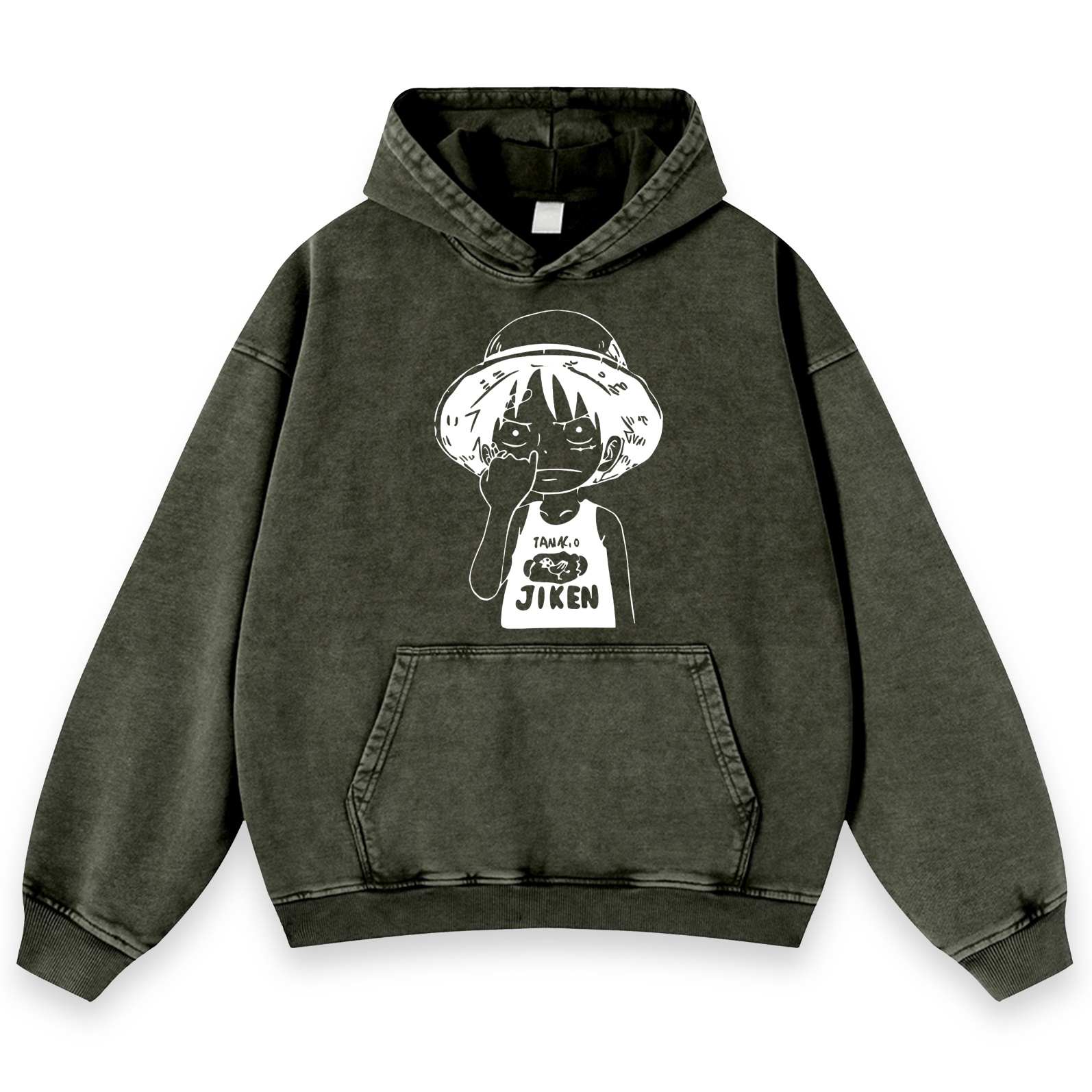 Classic Anime Character Print Washed Vintage Hoodie 08