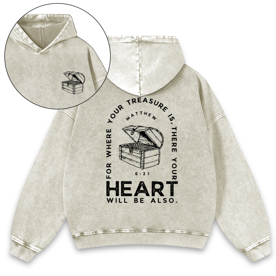 For Where Your Treasure ls Chrsitian Washed Vintage Hoodie