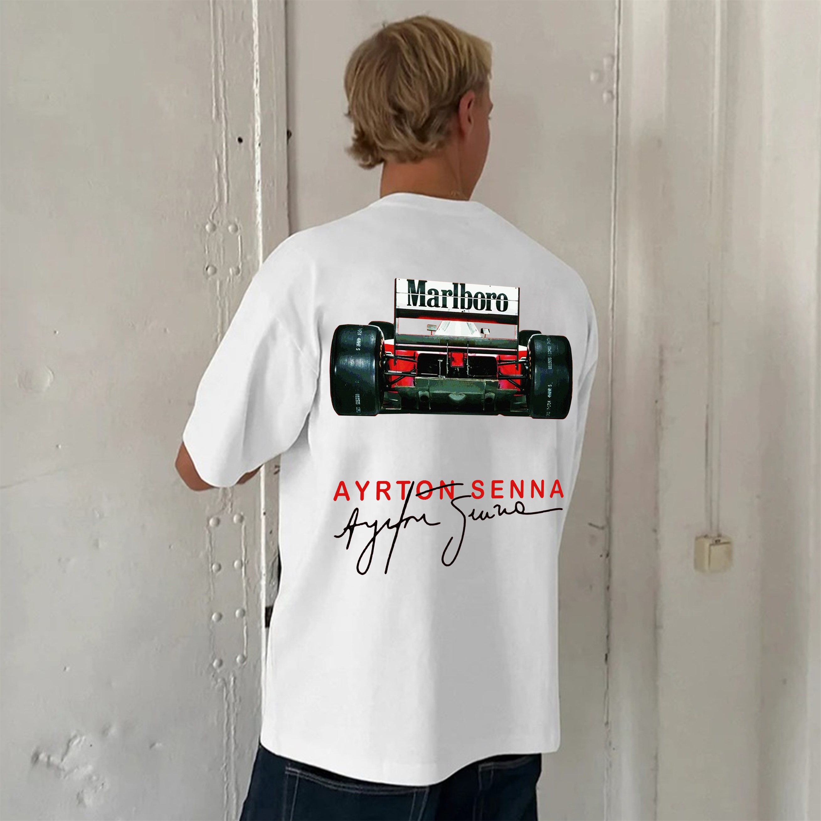Classic Ayrton Senna Street Print Pure Cotton Casual Short Sleeves 06