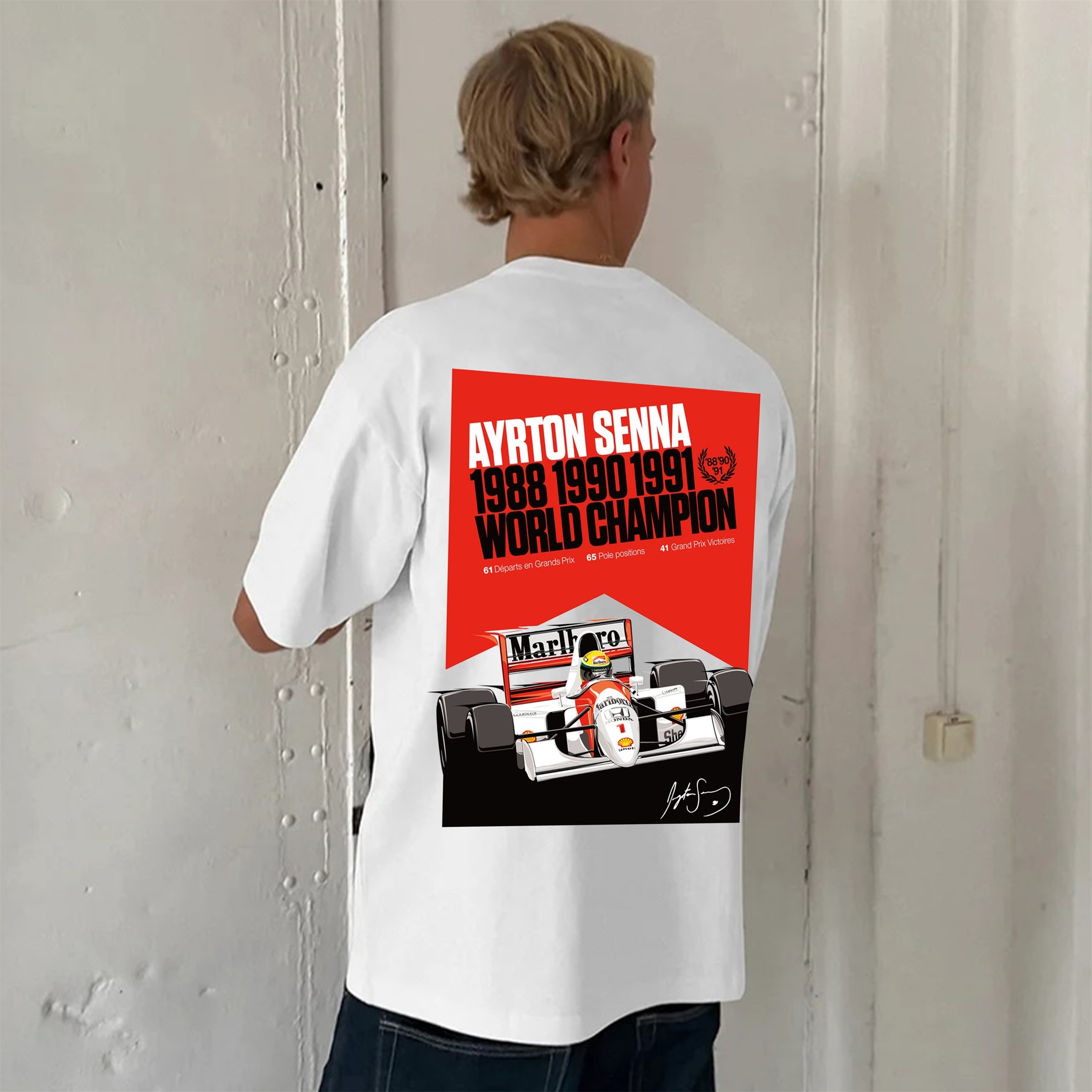 Classic Ayrton Senna Street Print Pure Cotton Casual Short Sleeves 05