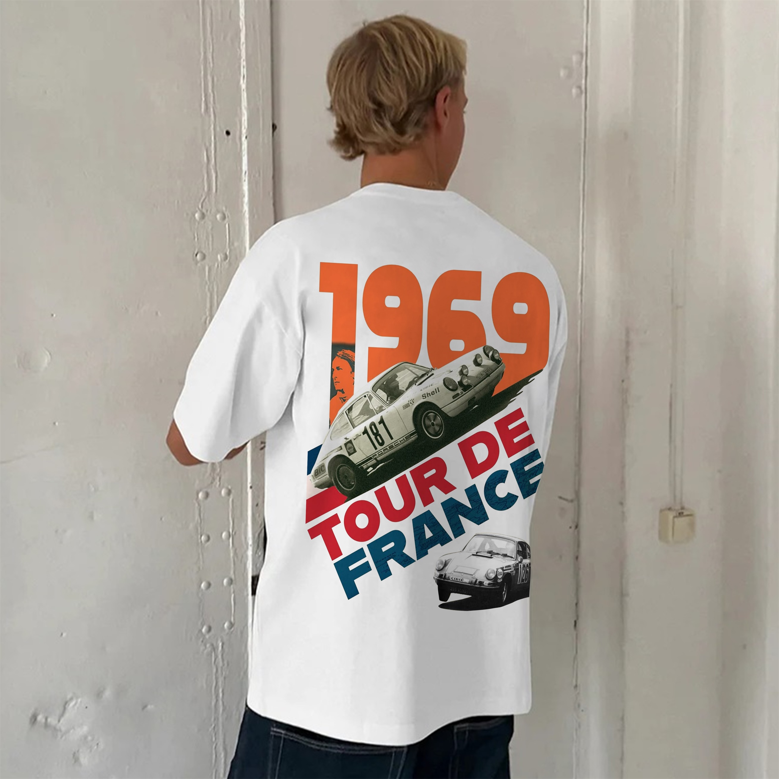 Retro Street Racing Printed Cotton Casual Short Sleeves 01