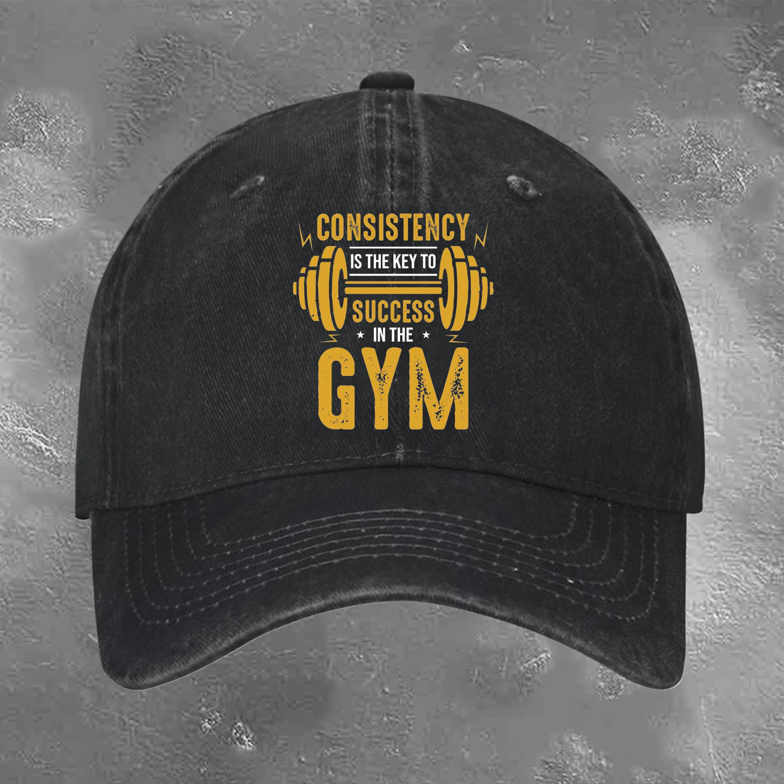 CONSISTENCY IS THE KEY TO IN THE GYM Retro Trendy Washed Baseball Cap