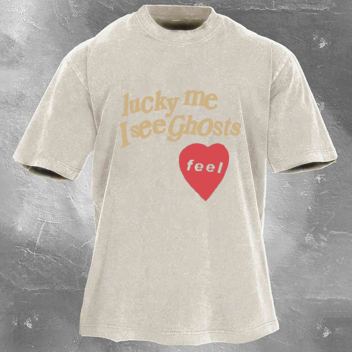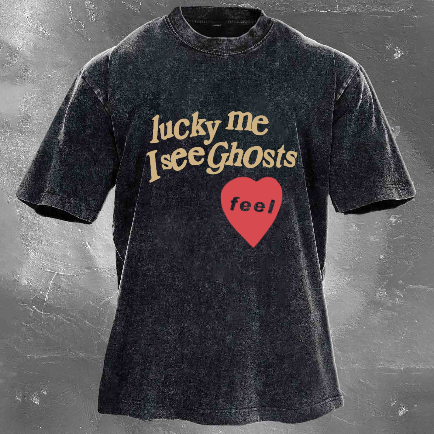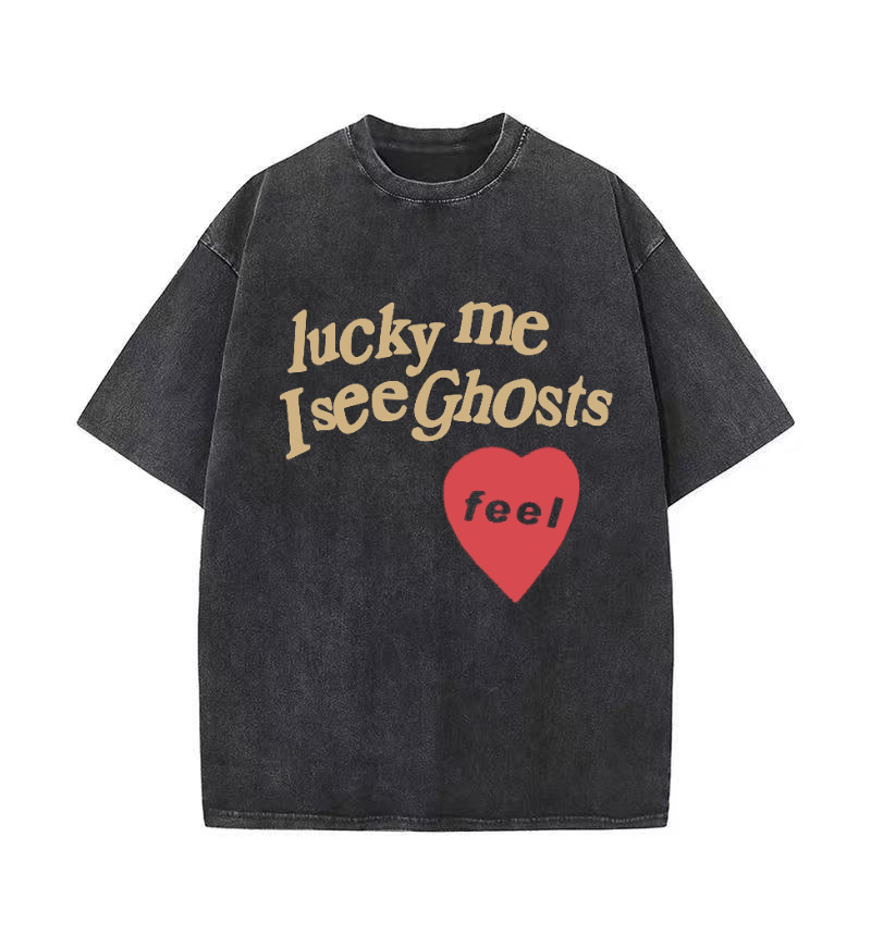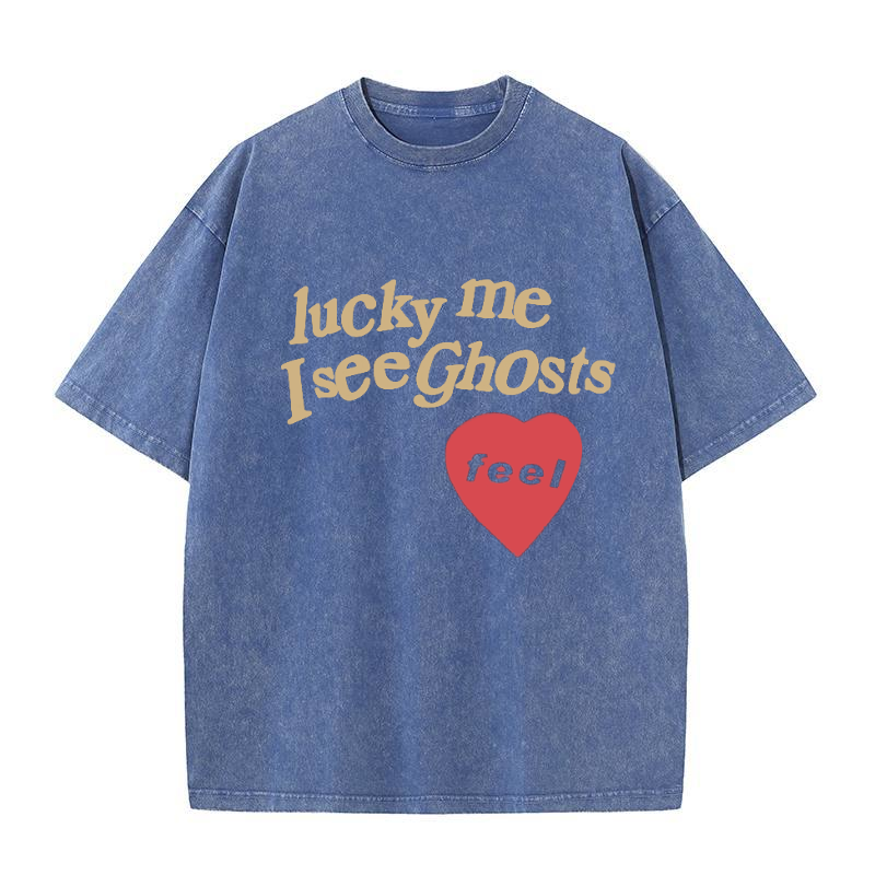 LUCKY ME I SEE GHOSTS FEEL Men's washed T-shirt