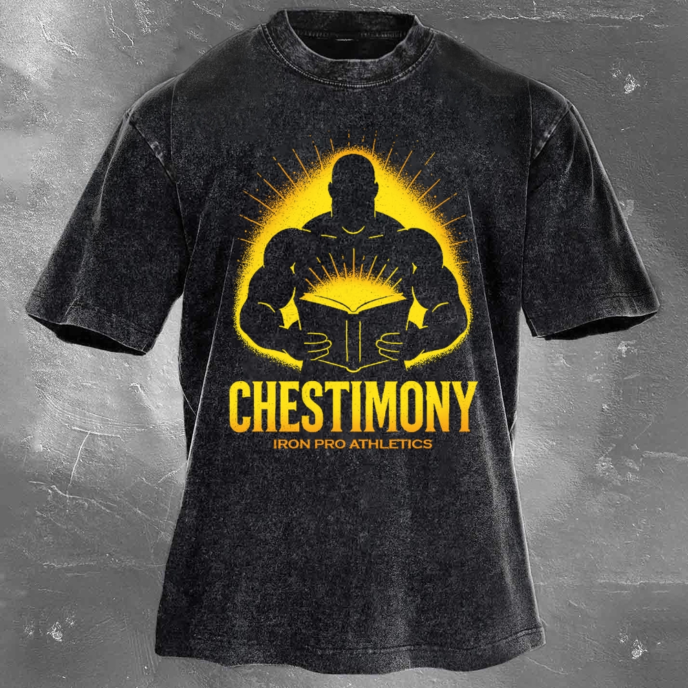 Chestimony Iron Pro Athletics Printed Washed Retro Casual T-shirt