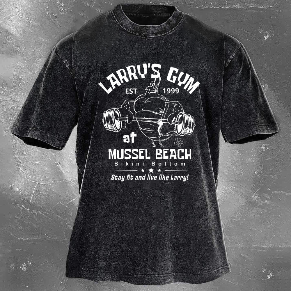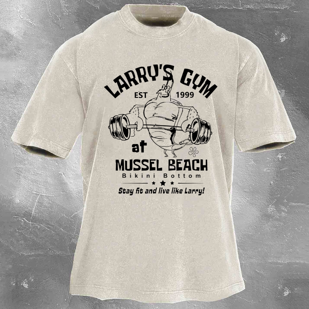 Larry's Gym Printed Washed Retro Casual T-Shirt