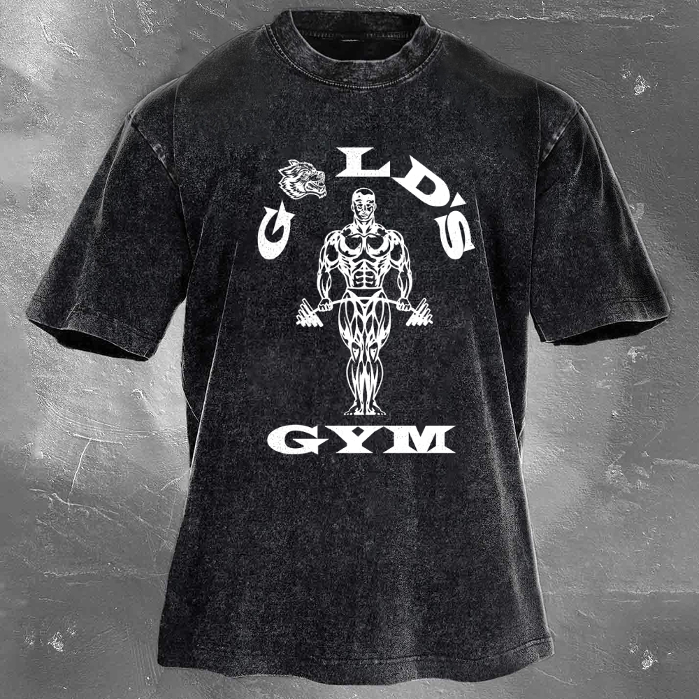 Larry's Gym Printed Washed Retro Casual T-shirt