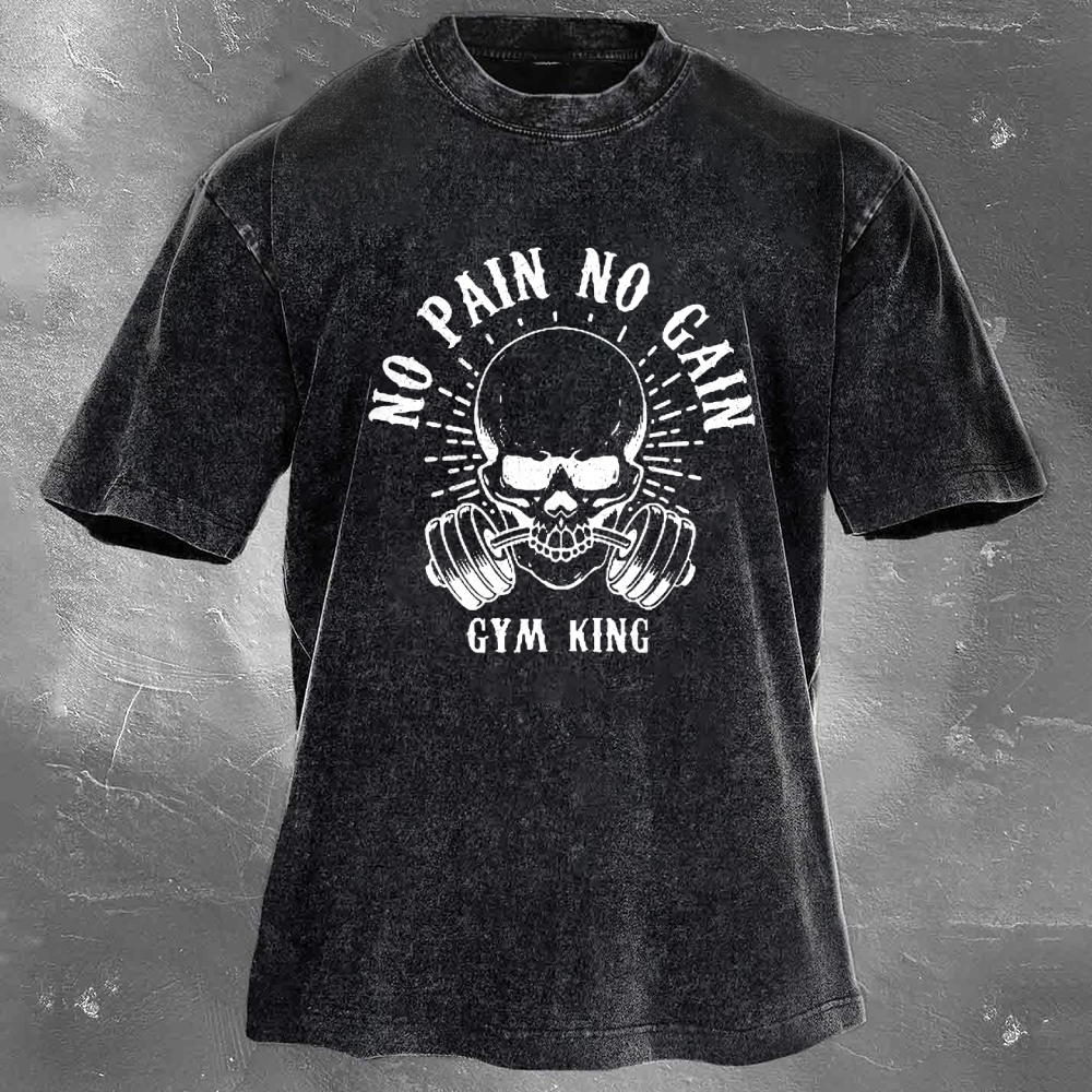 No Pain No Gain Printed Washed Retro Casual T-shirt