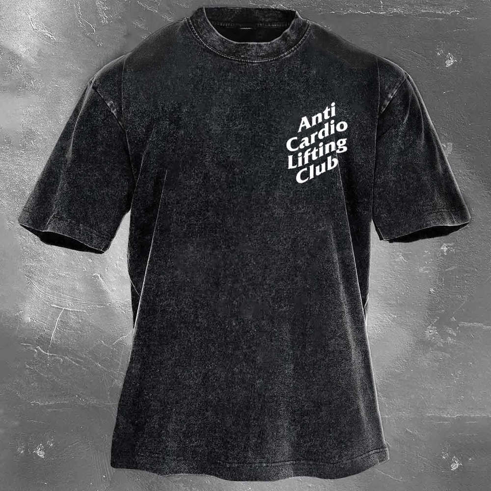 Anti Cardio Fiting Club Printed Washed Retro Casual T-Shirt