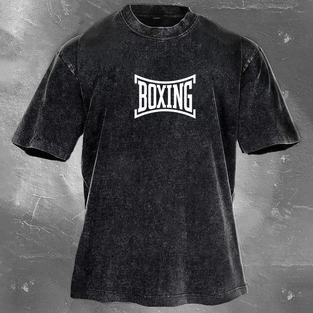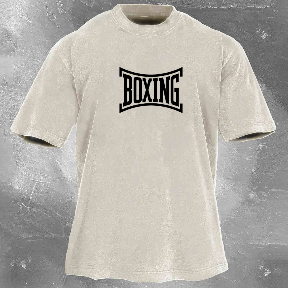 Fitness Print Pattern Washed Retro Casual T-Shirt 01