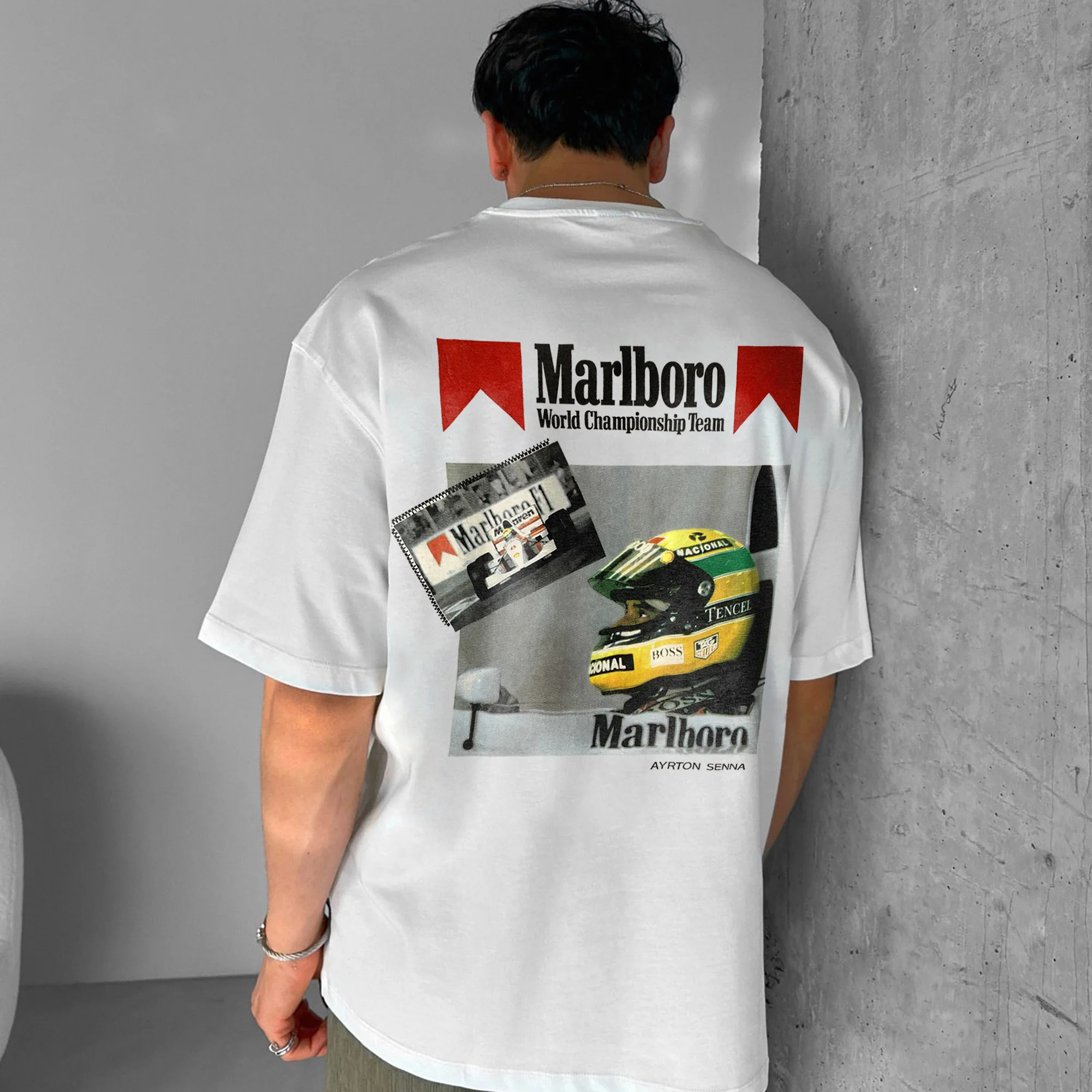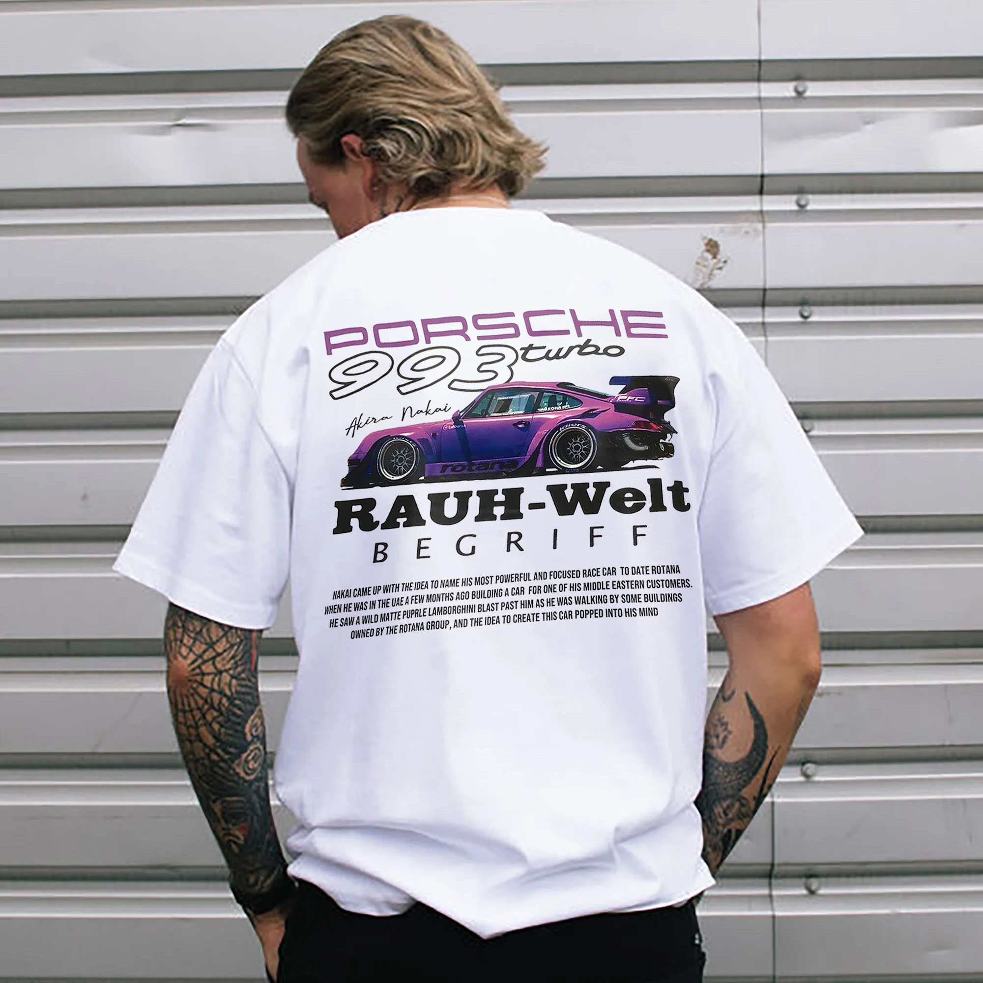 Casual Retro Street Car Printed Short Sleeve Crew Neck T-Shirt 230