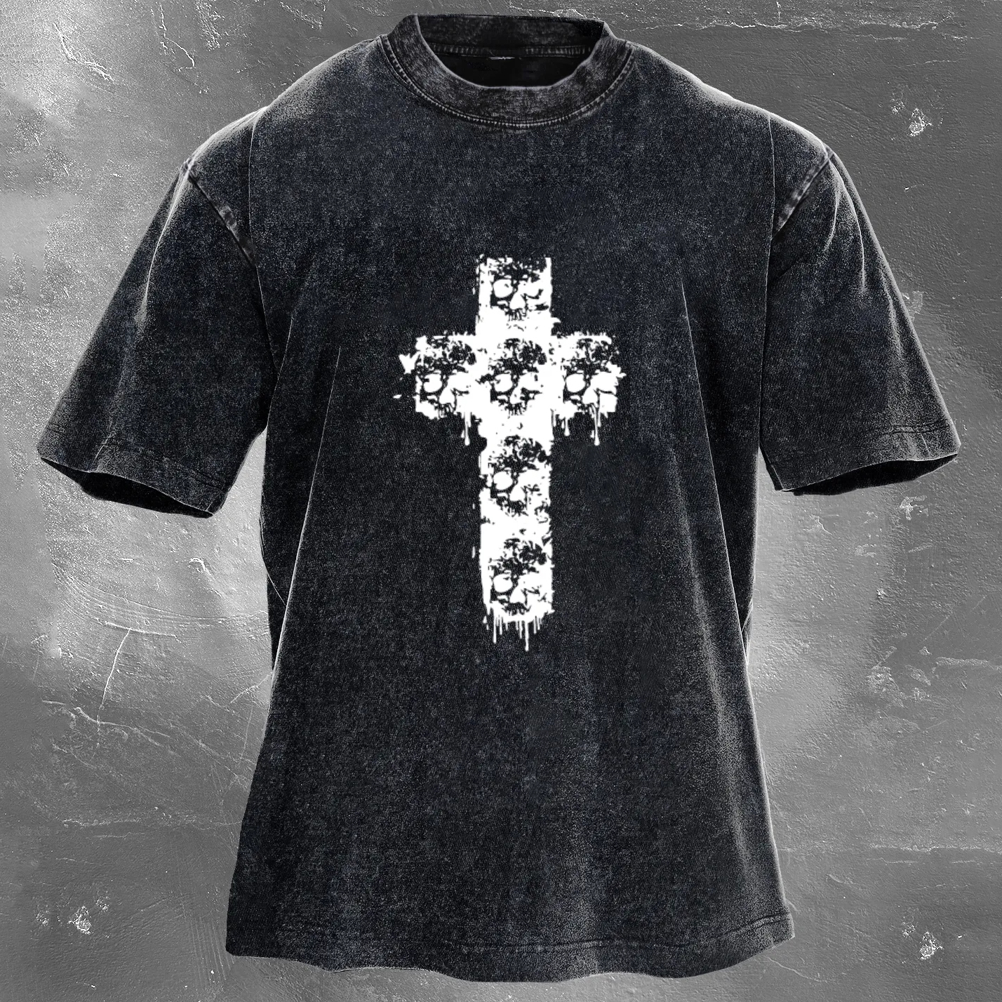 Fun Personality Skull Weightlifting Men's Washed T-shirt