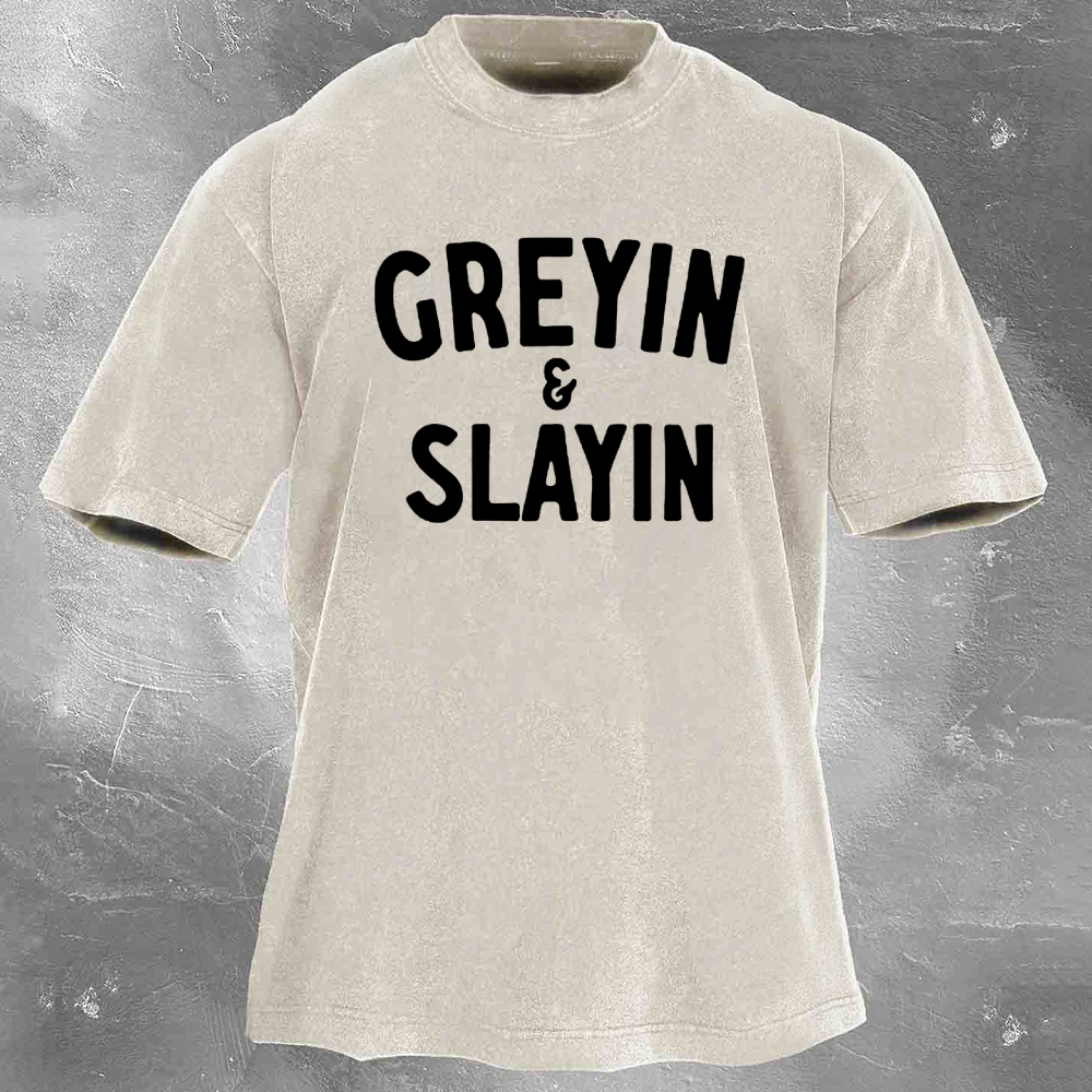 Men's Motivational Fitness Washed Retro Casual T-Shirt 04