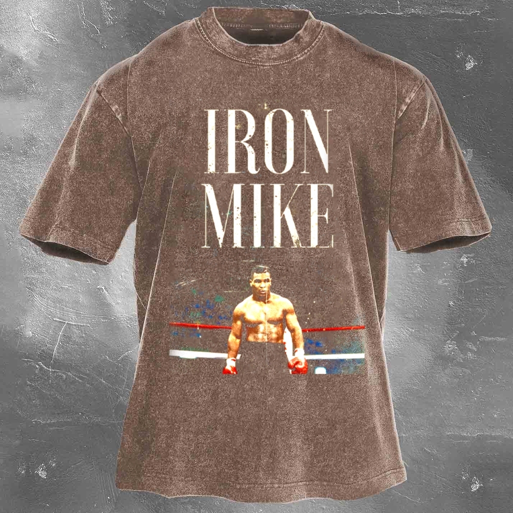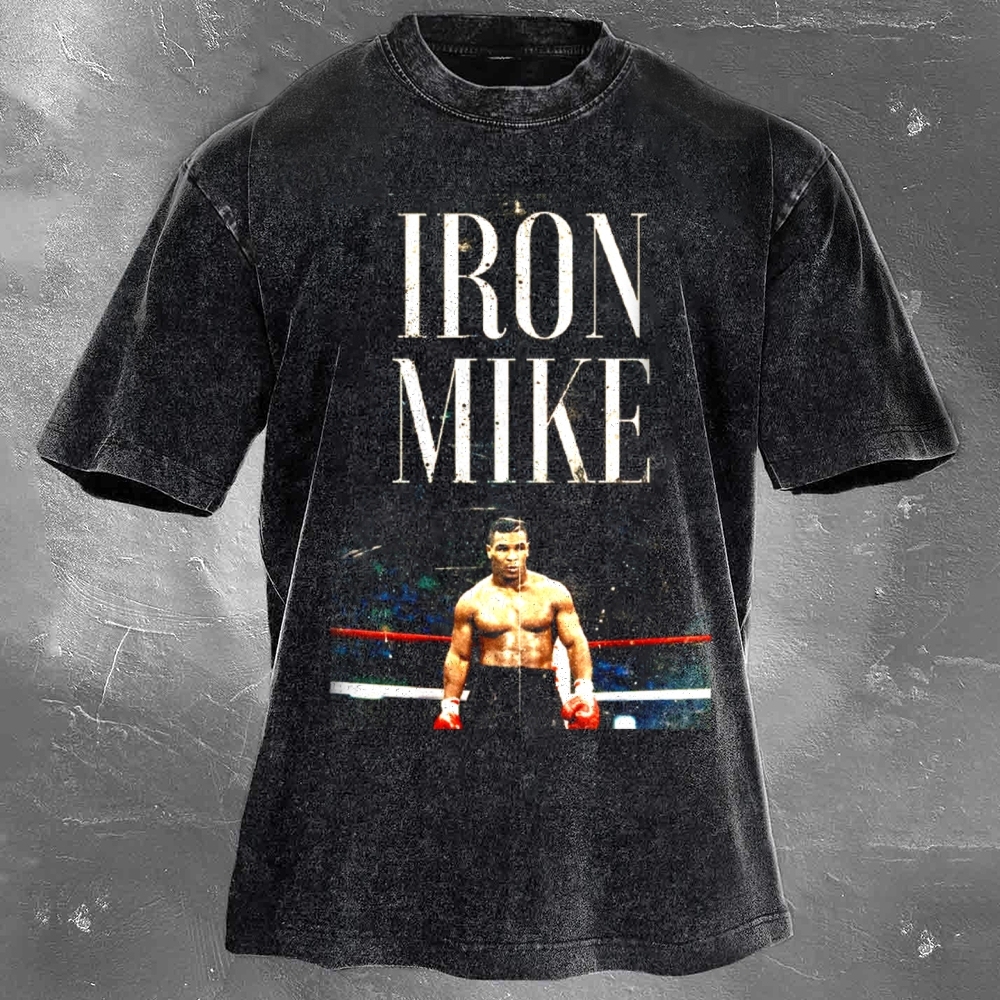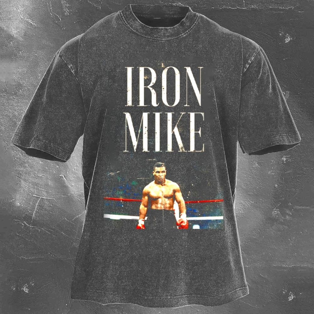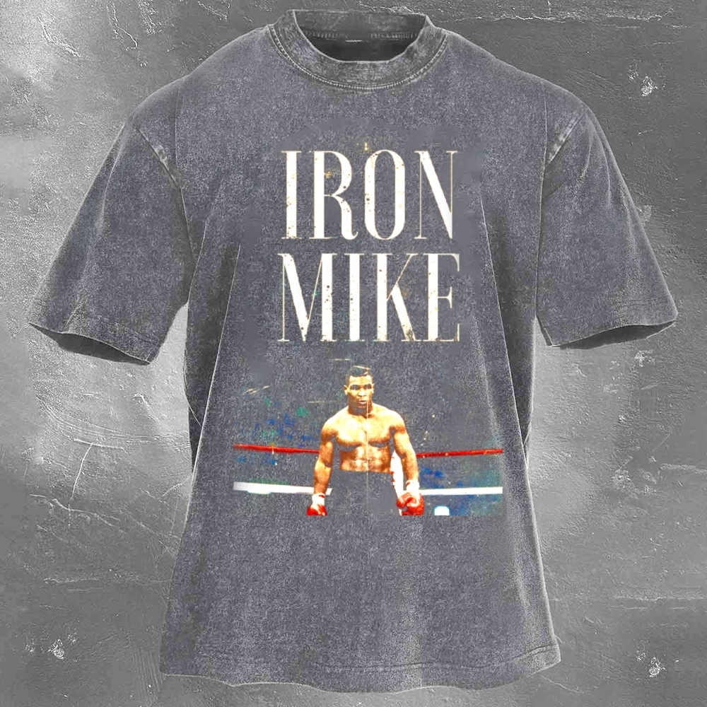 Boxing Superstar Mike Tyson Printed Pattern Washed Retro Casual T-Shirt 05