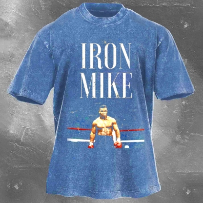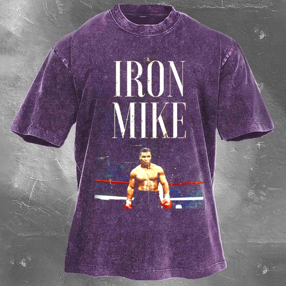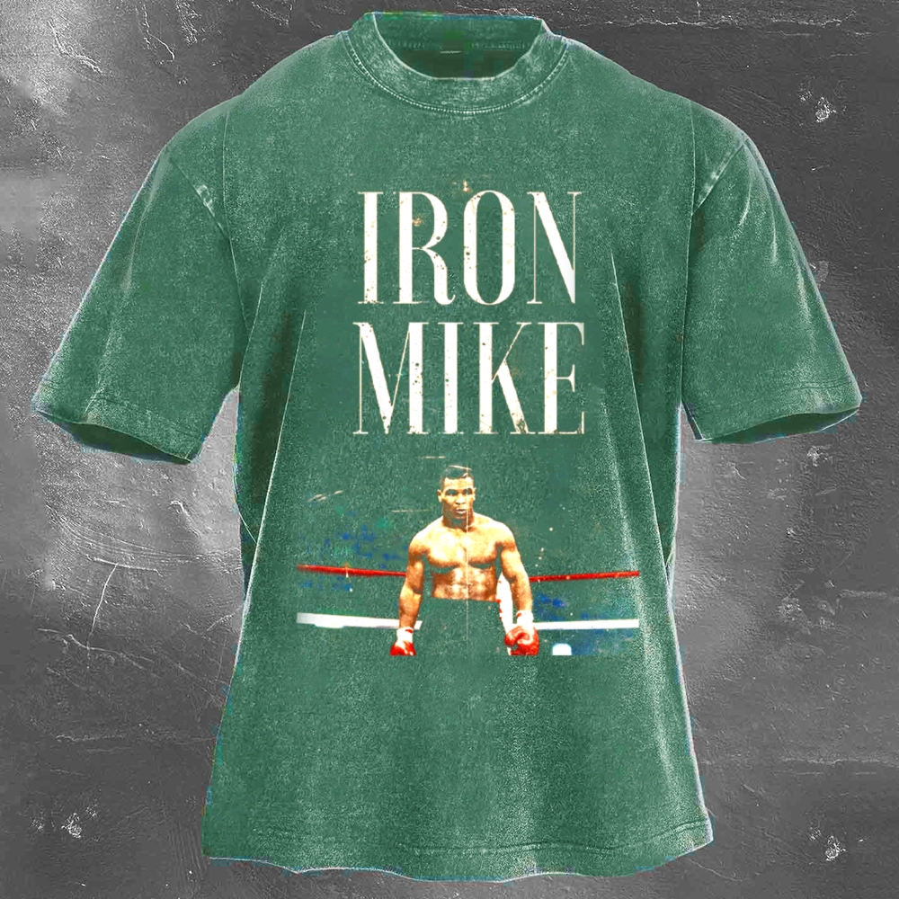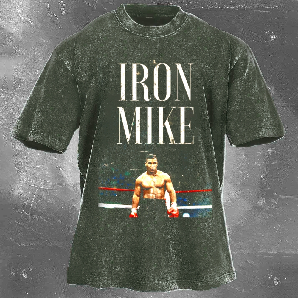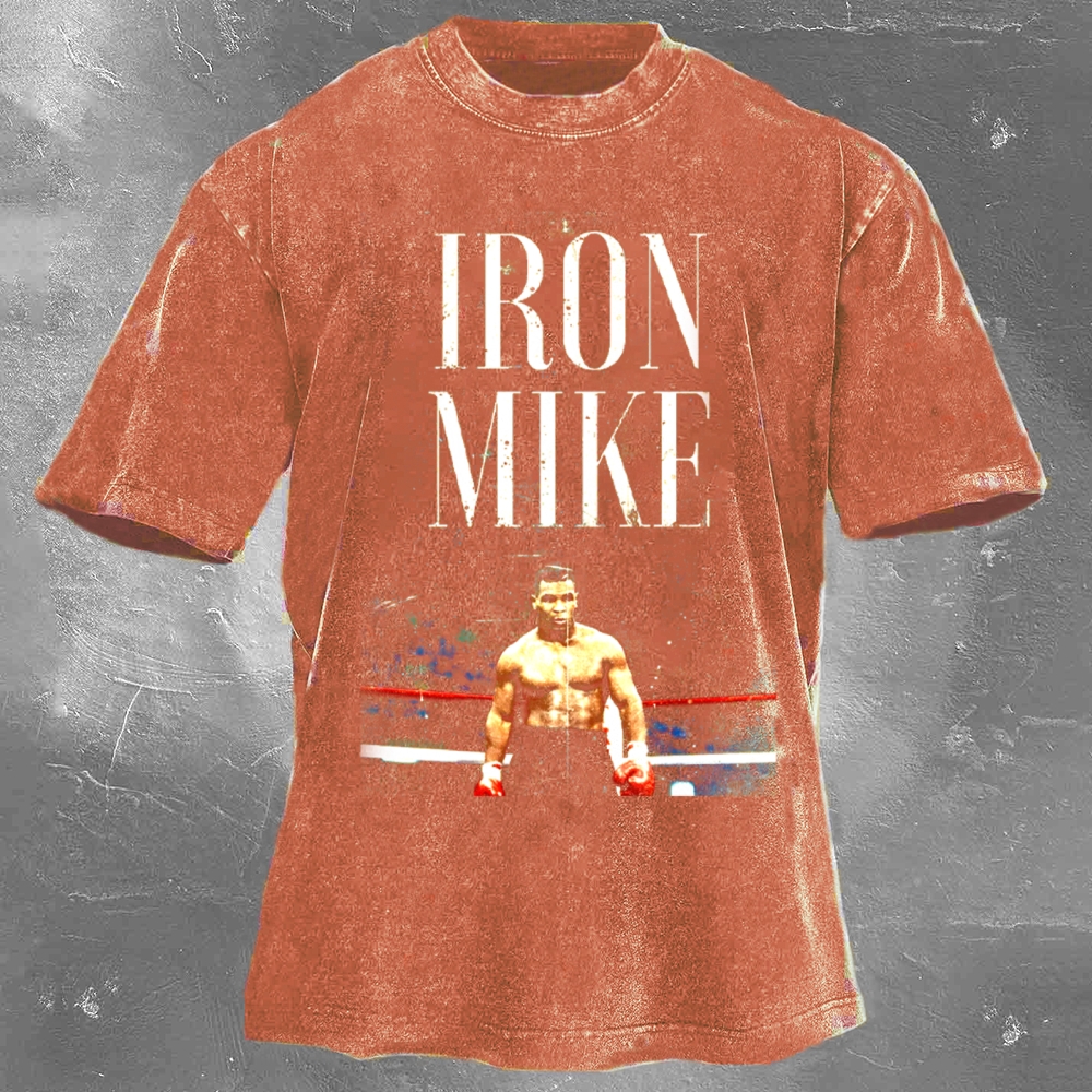 Boxing Superstar Mike Tyson Printed Pattern Washed Retro Casual T-Shirt 05