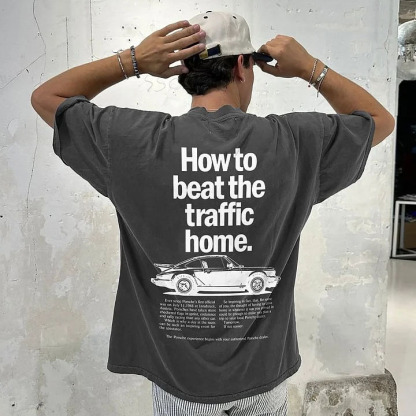 Casual Retro Street Car Printed Short Sleeve Crew Neck T-Shirt 106