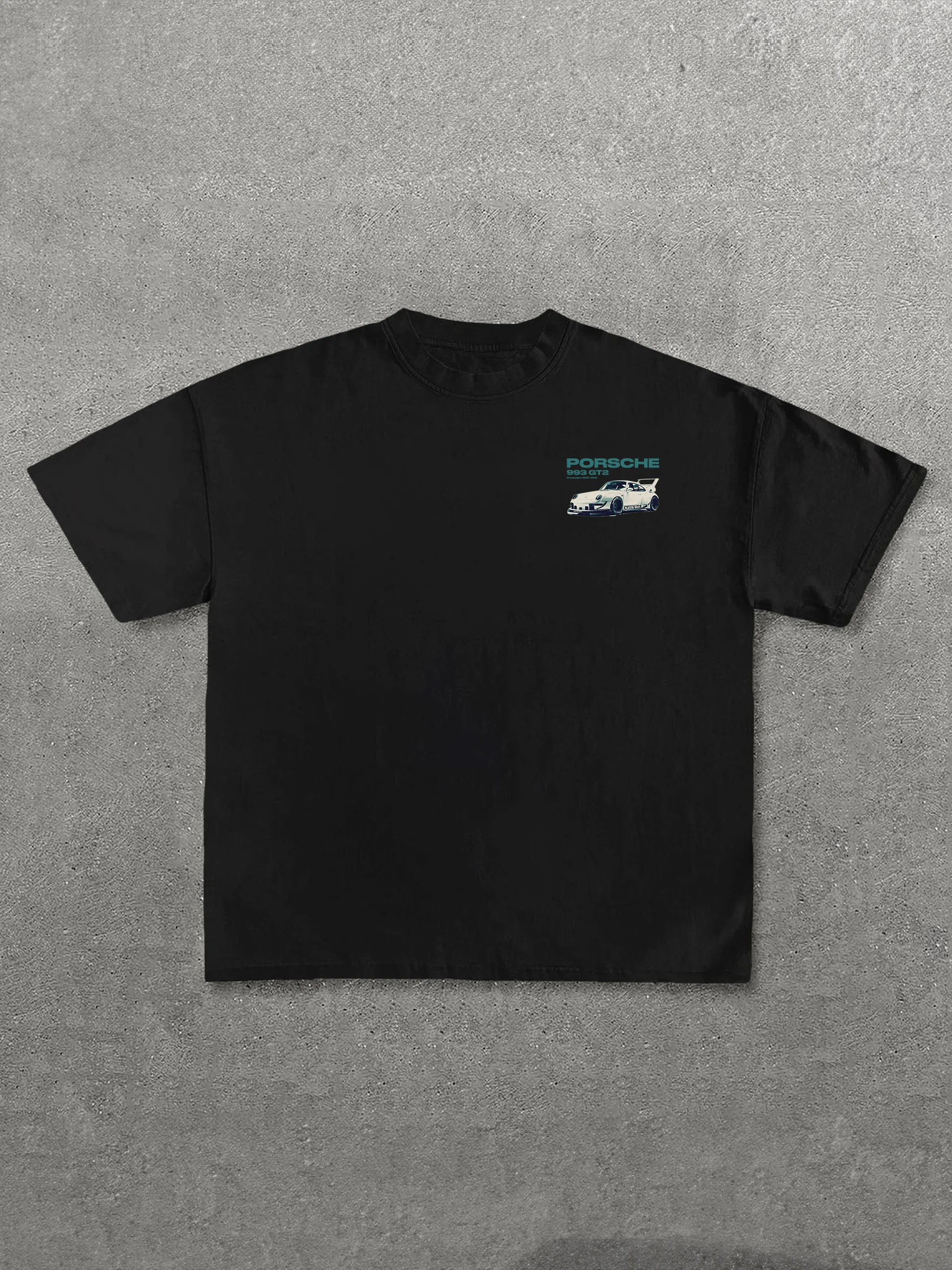 Casual Retro Street Car Printed Short Sleeve Crew Neck T-Shirt 115