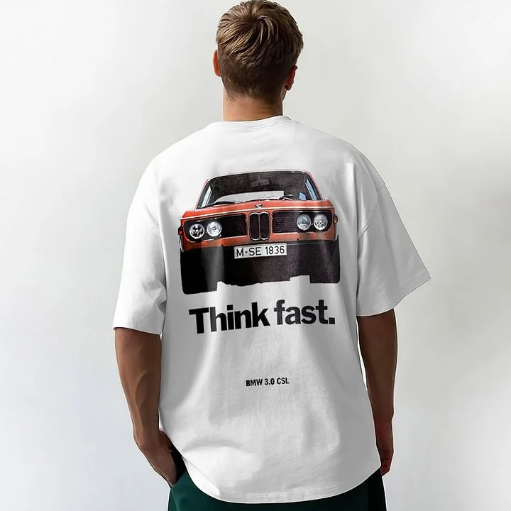 Casual Retro Street Car Printed Short Sleeve Crew Neck T-Shirt 122