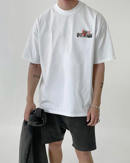 Casual Retro Street Car Printed Short Sleeve Crew Neck T-Shirt 203