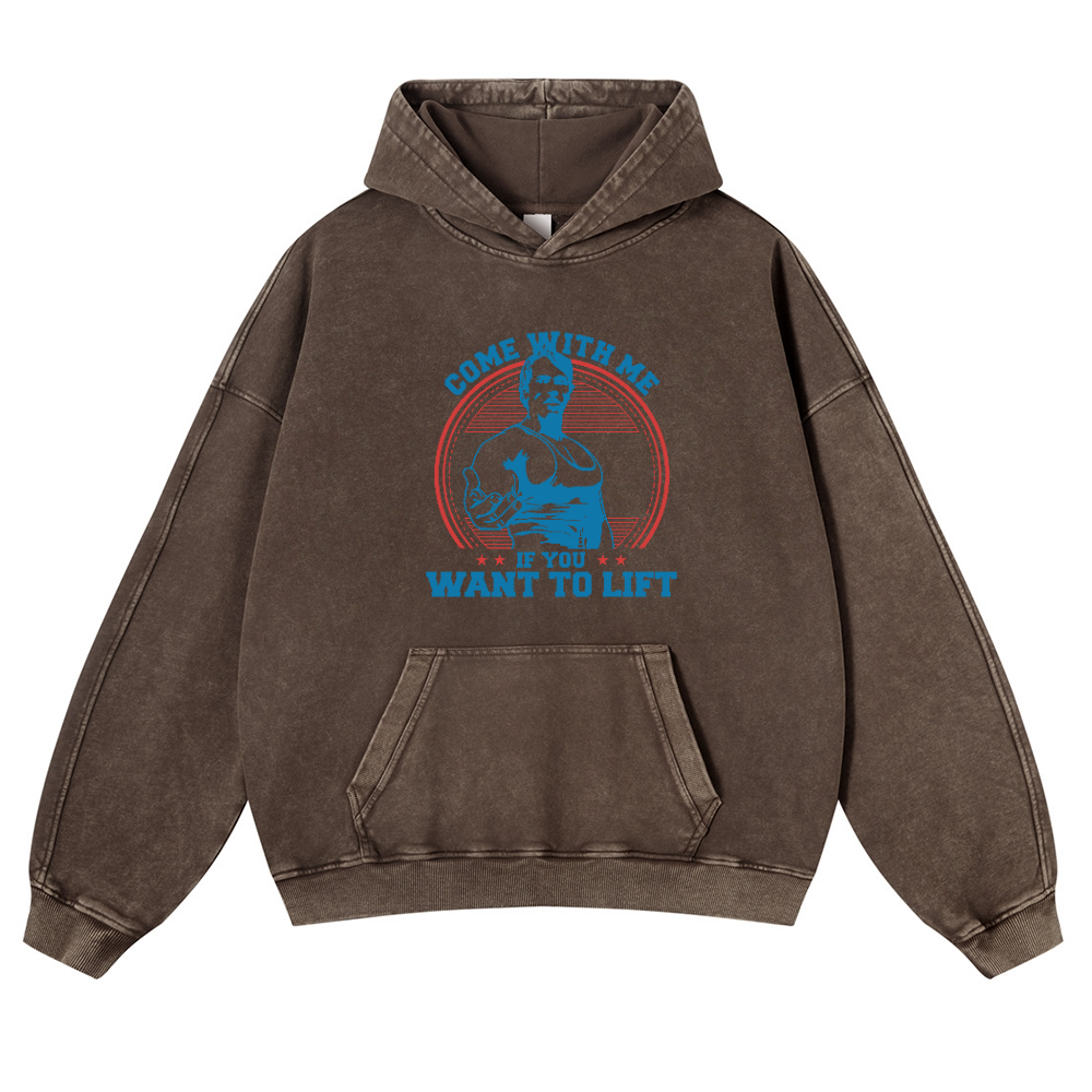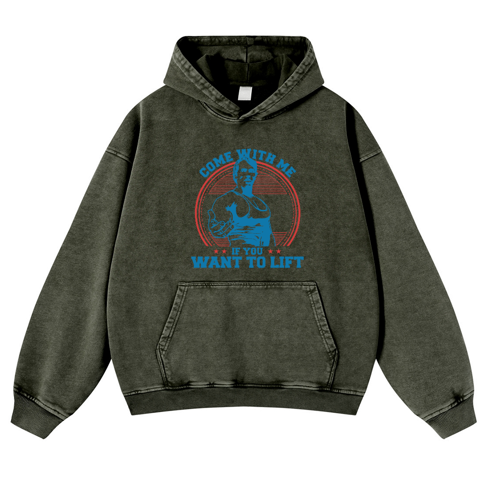 COME WITH ME IF YOU WANT TO LIFT Men's Washed Hoodie