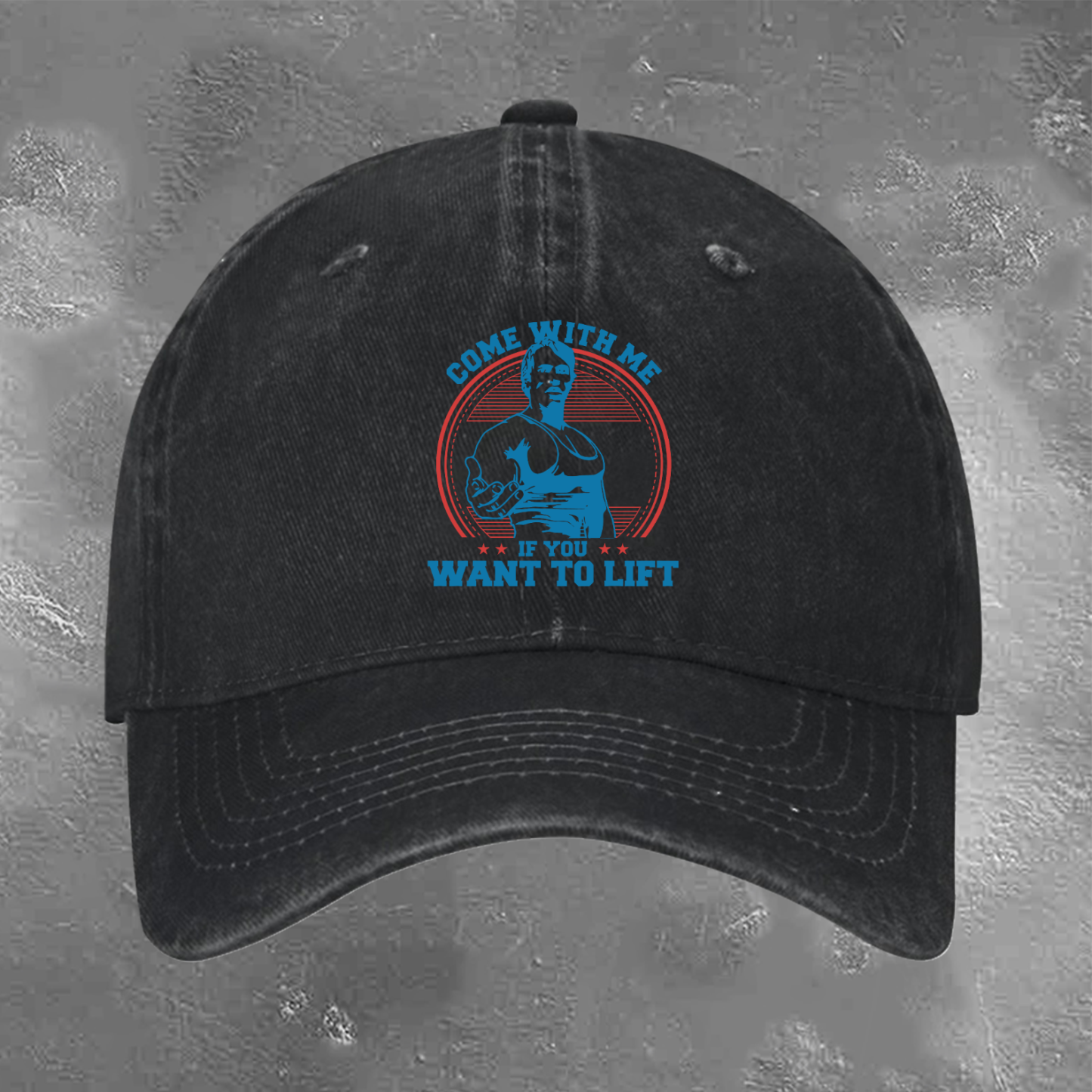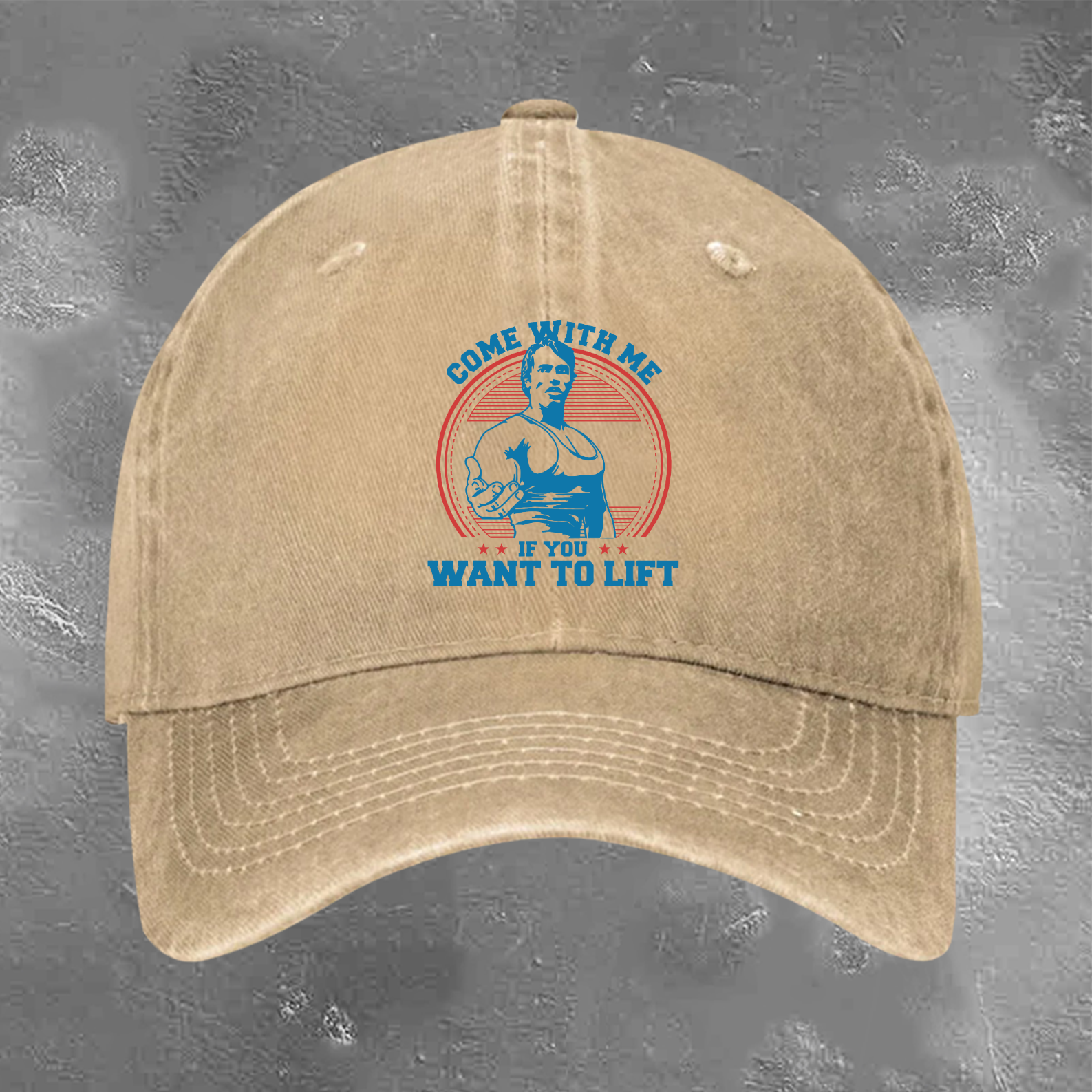 Come with Me if You Want to Lift Retro Trendy Washed Baseball Cap