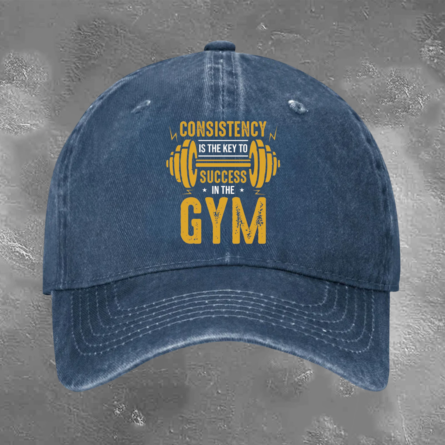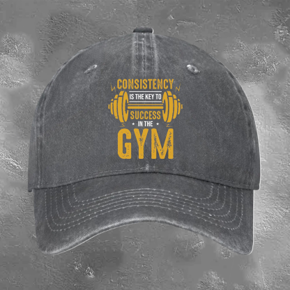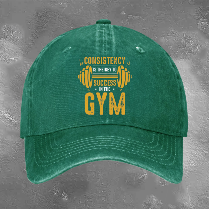 CONSISTENCY IS THE KEY TO IN THE GYM Retro Trendy Washed Baseball Cap