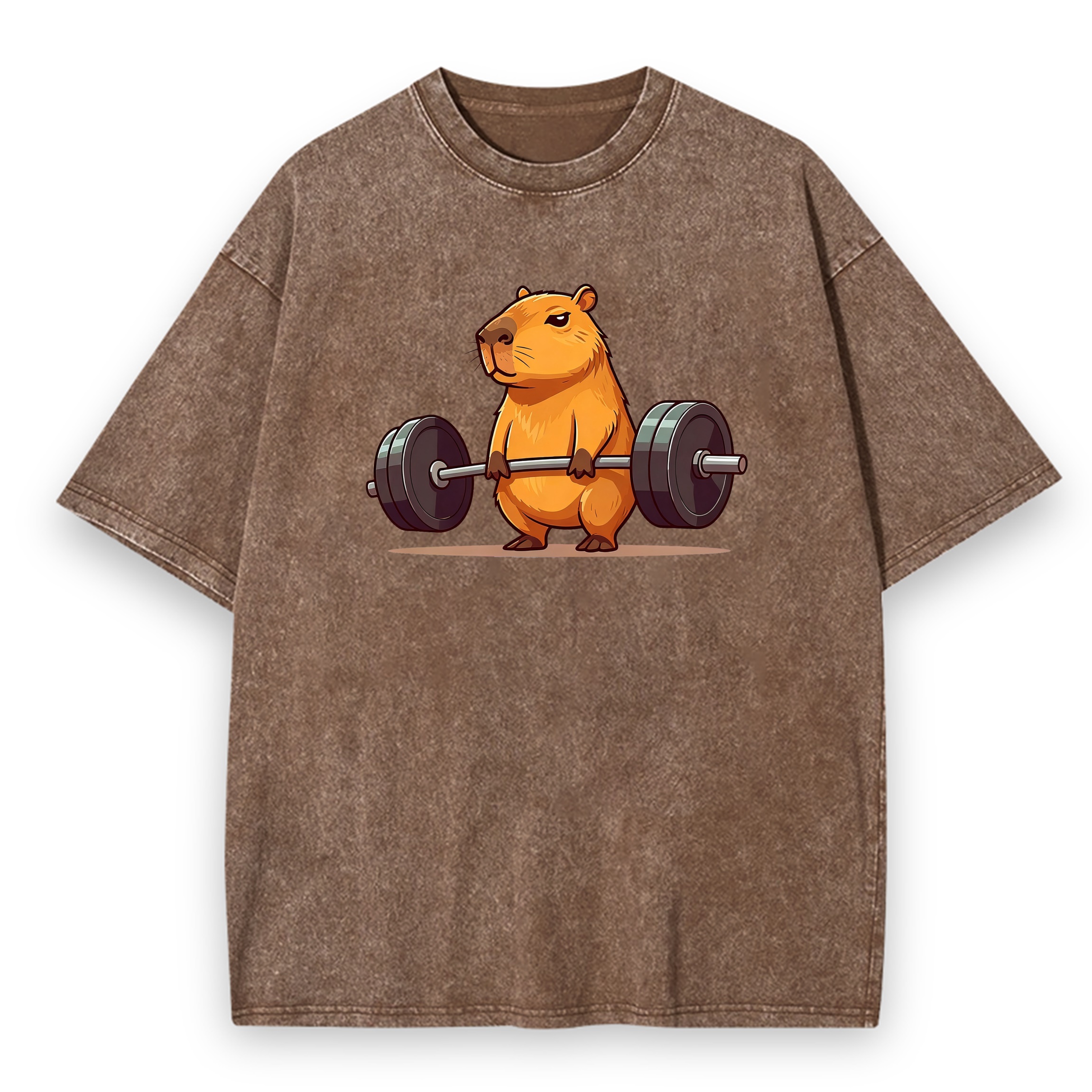Deadlift Capybara Funny Fitness Animal Funny Washed Vintage T-Shirt
