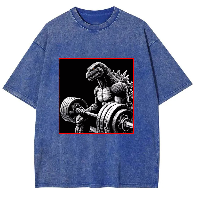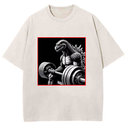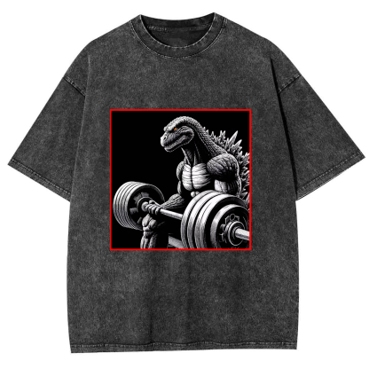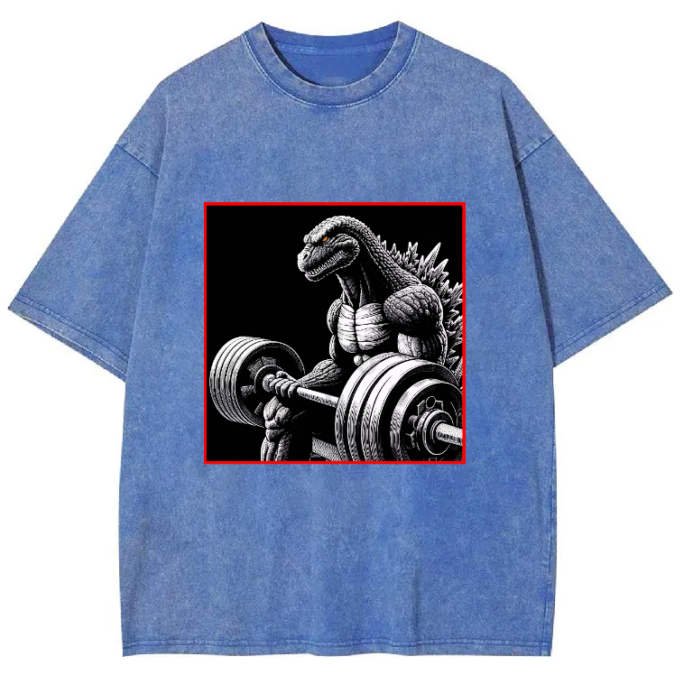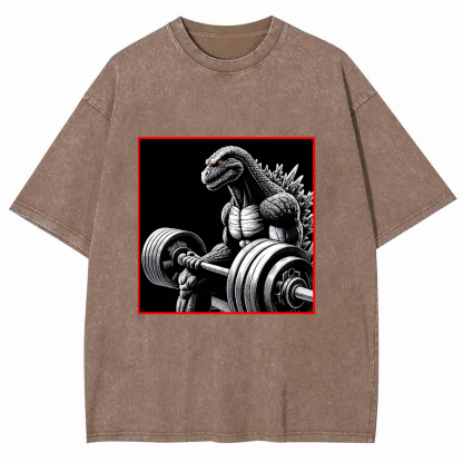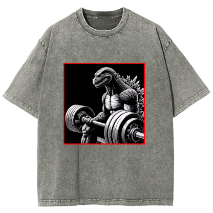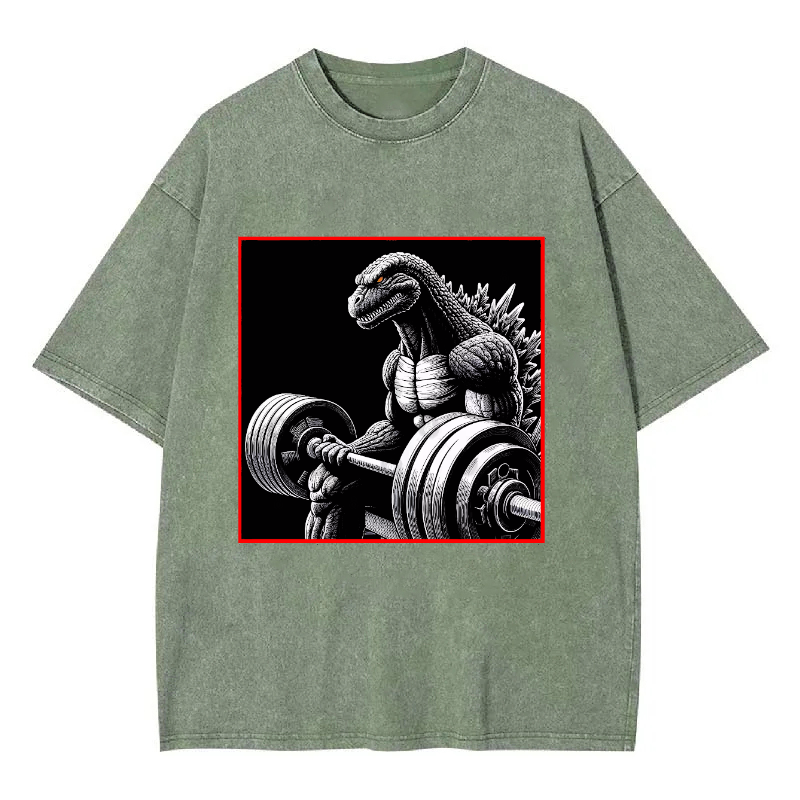 Dinosaur Fitness Pattern Men's Washed Crew Neck Short Sleeve T-Shirt