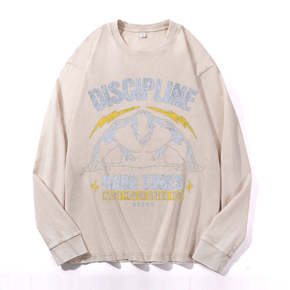 DISCIPLINE HARD TIMES MAKE YOU OR BREAK YOU BEAST Men's Washed Sweathshirt