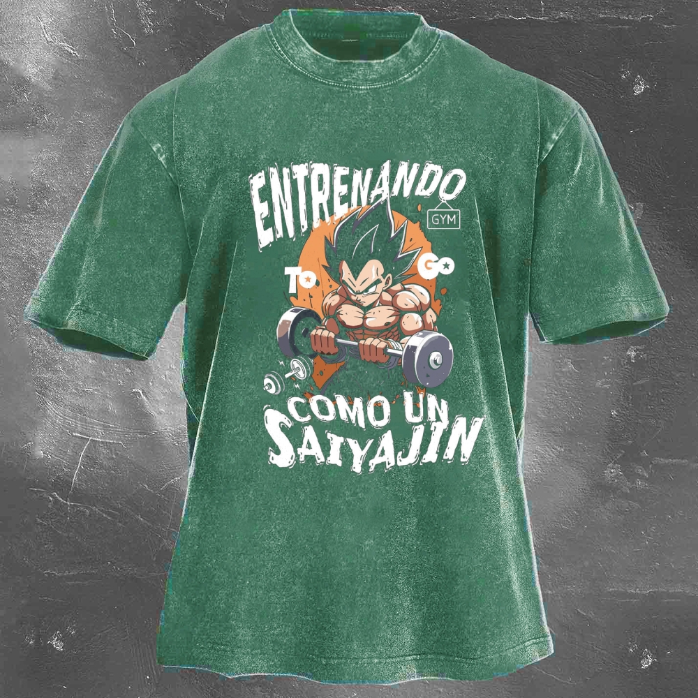 Entrenando Cartoon Print Washed Retro Casual T-Shirt