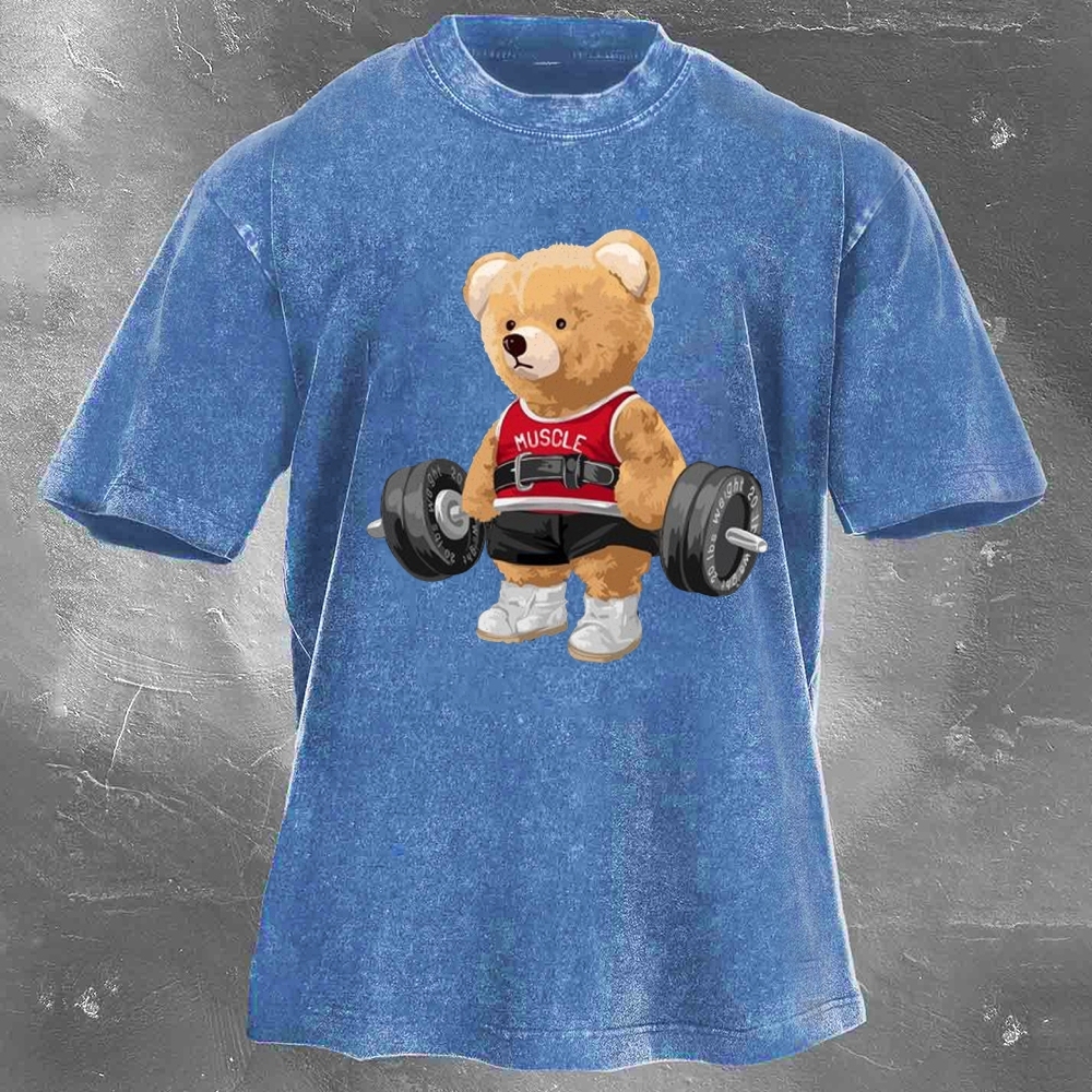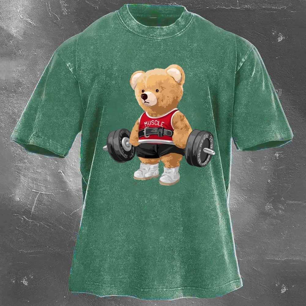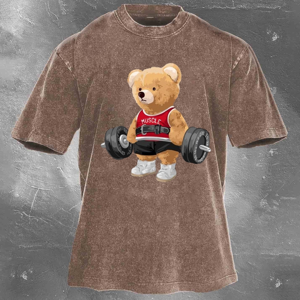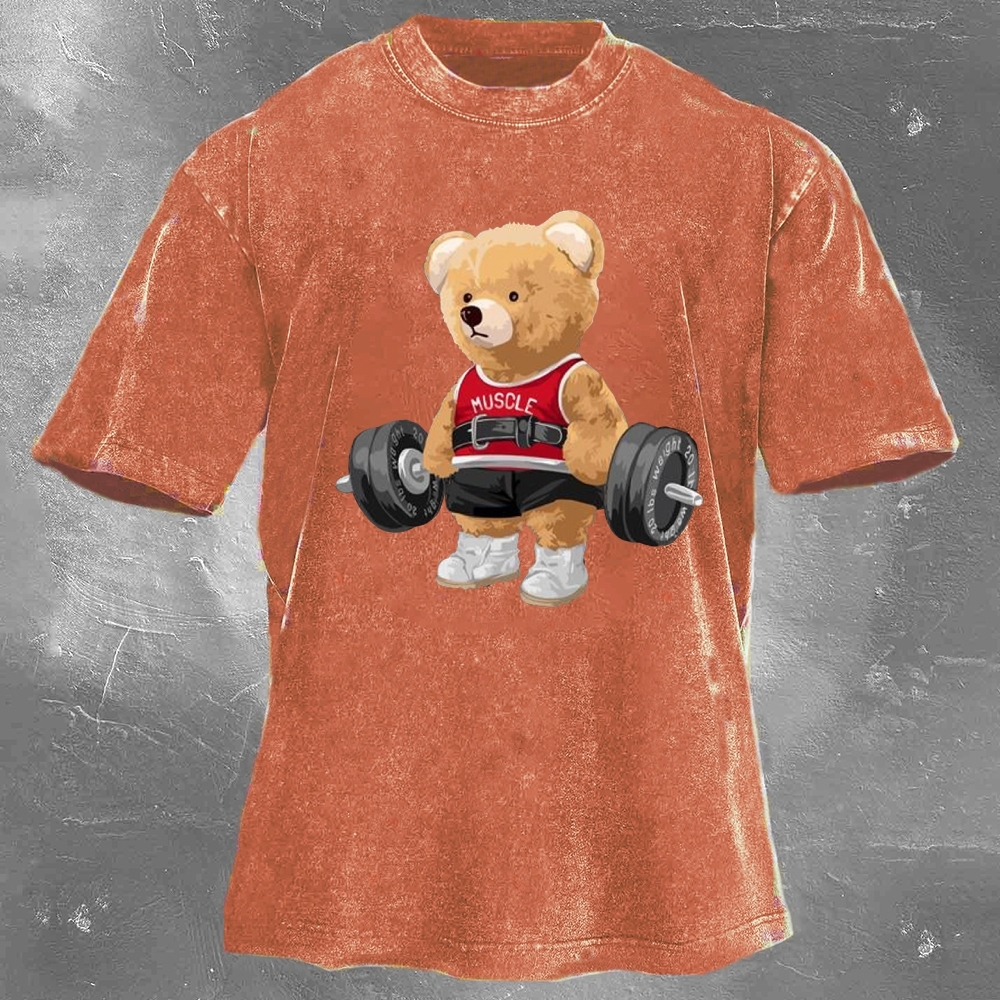 Fitness Print Pattern Washed Retro Casual T-Shirt 01