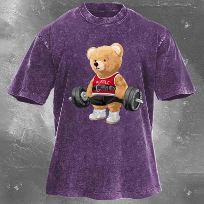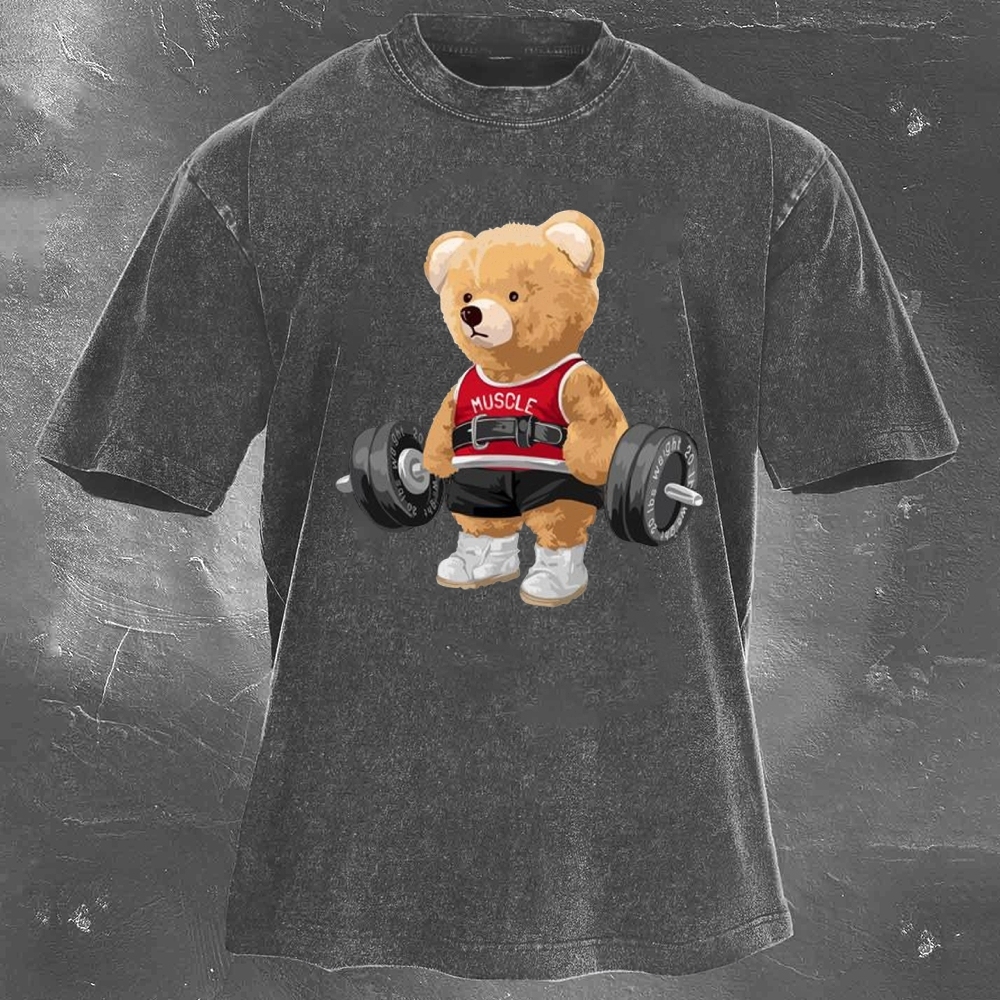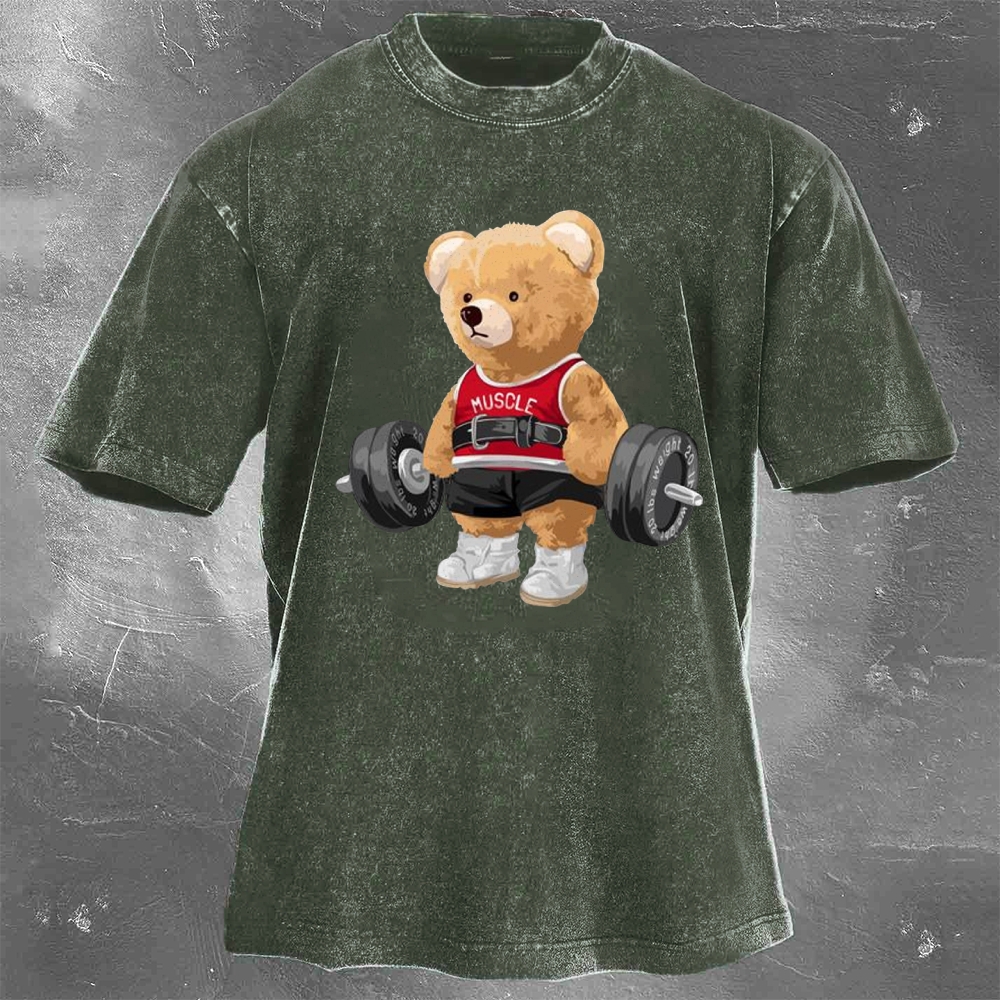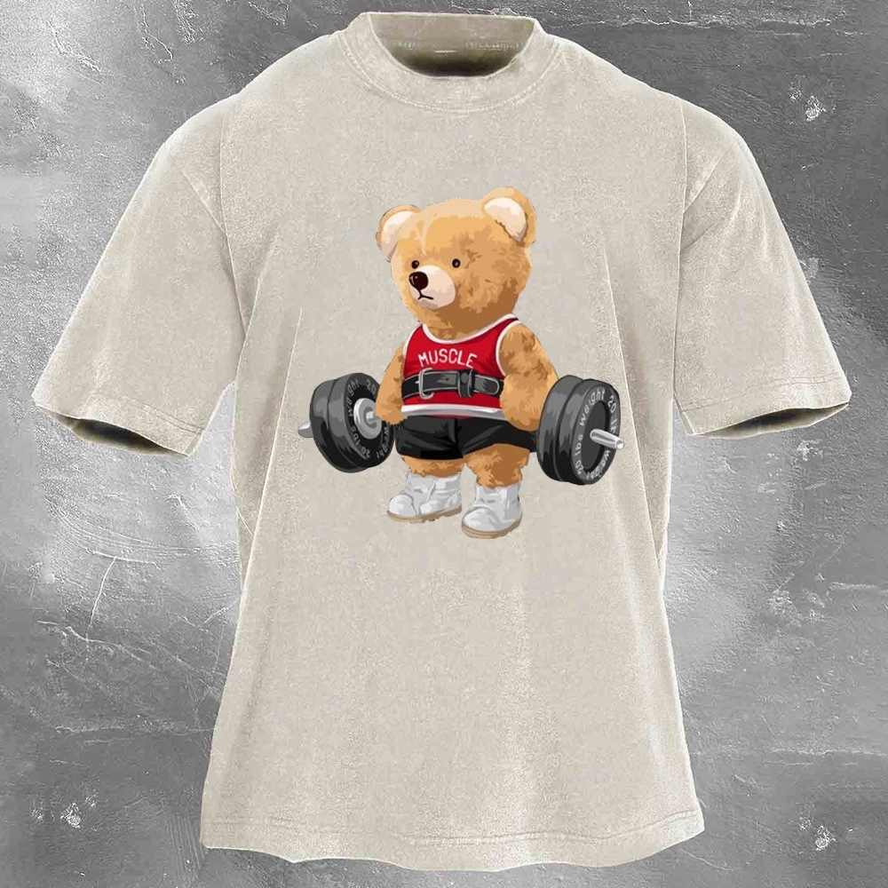 Fitness Print Pattern Washed Retro Casual T-Shirt 01