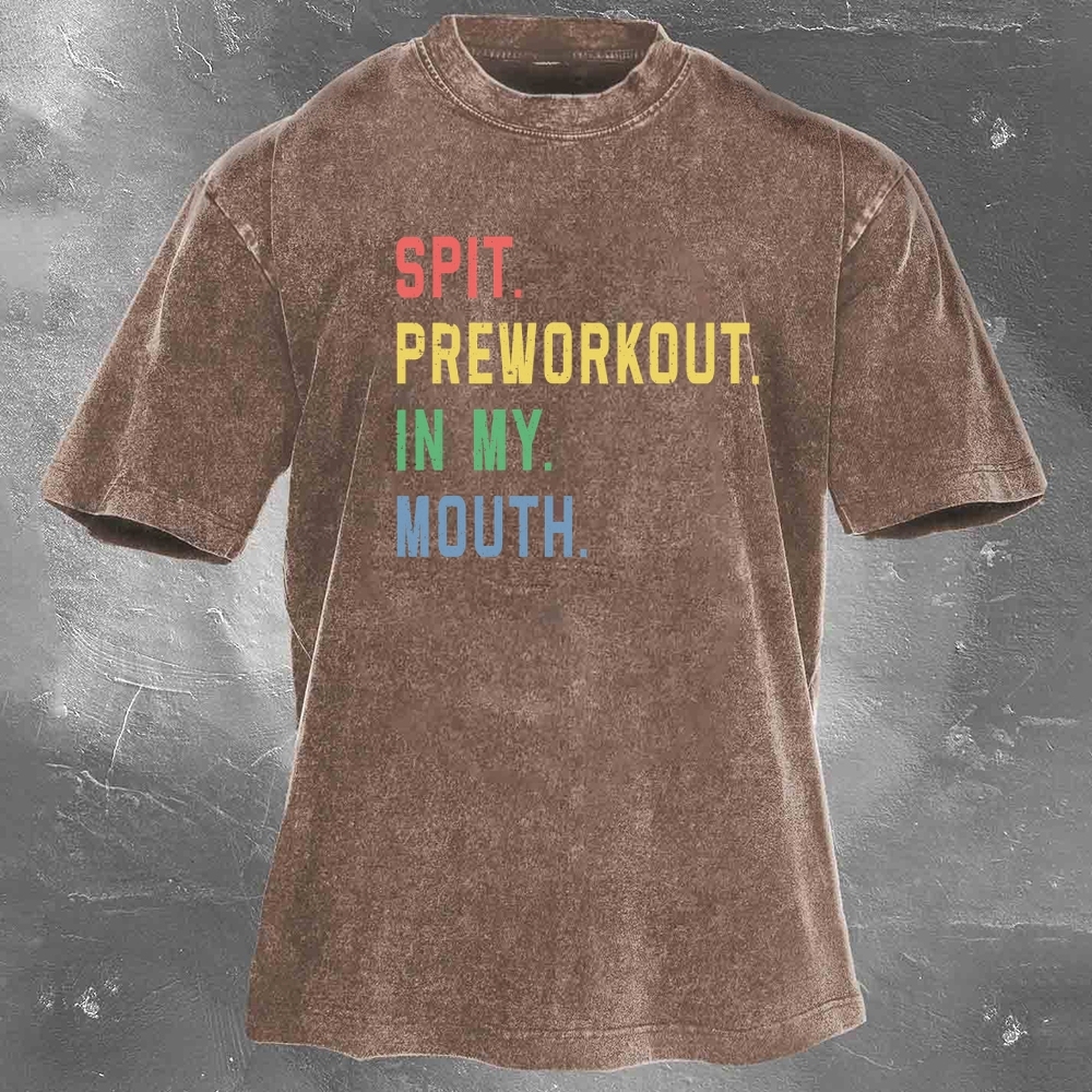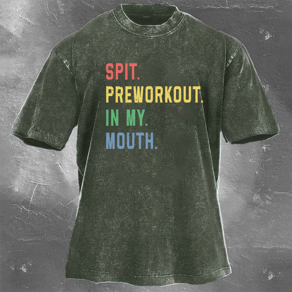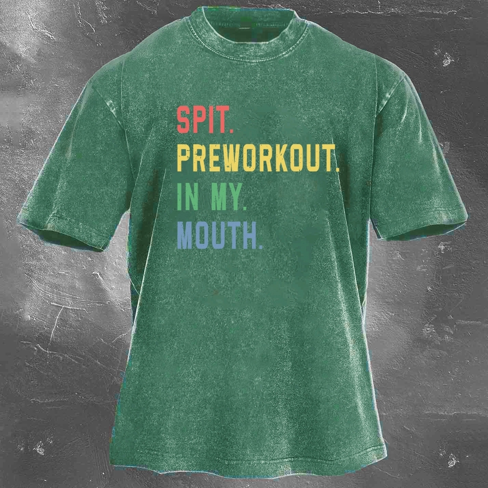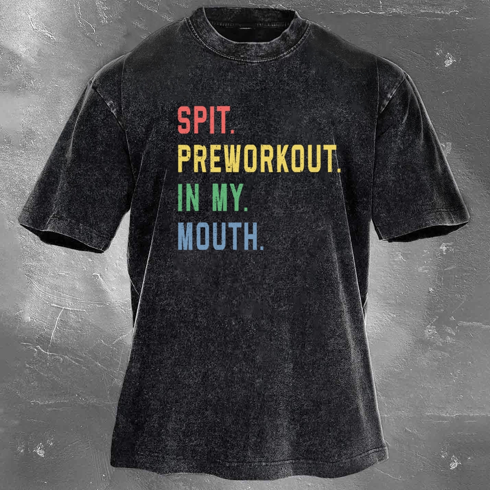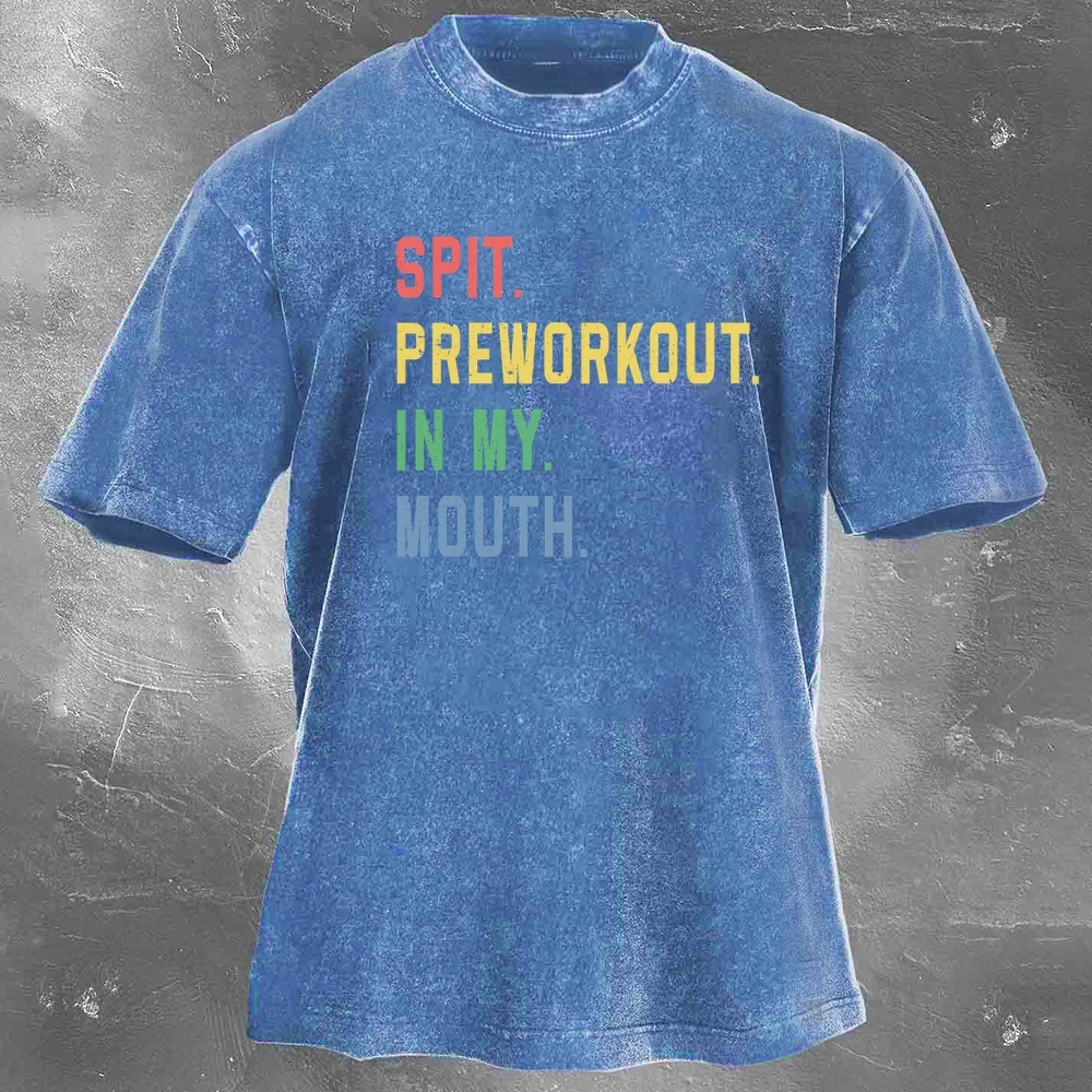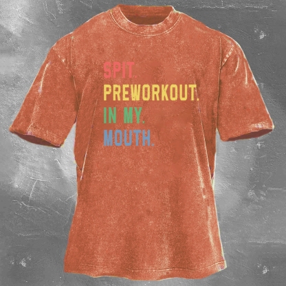 Fitness Print Pattern Washed Retro Casual T-Shirt 02
