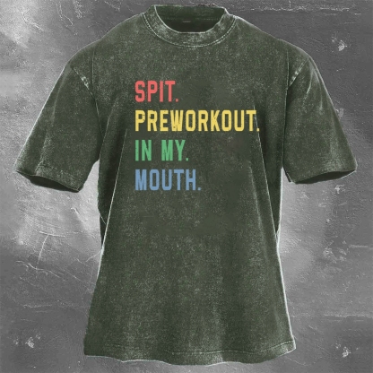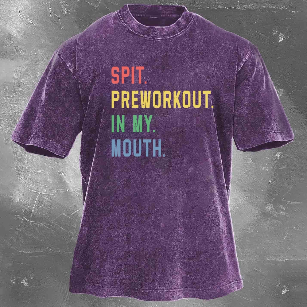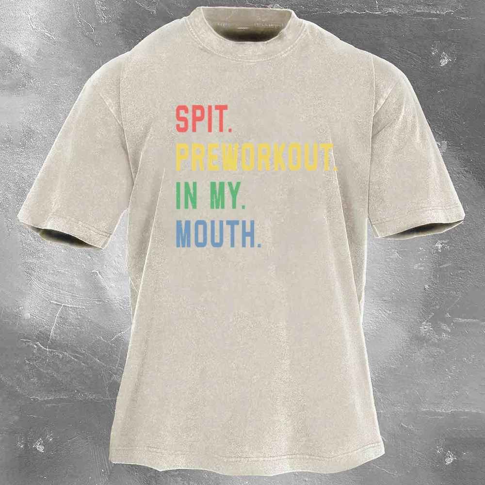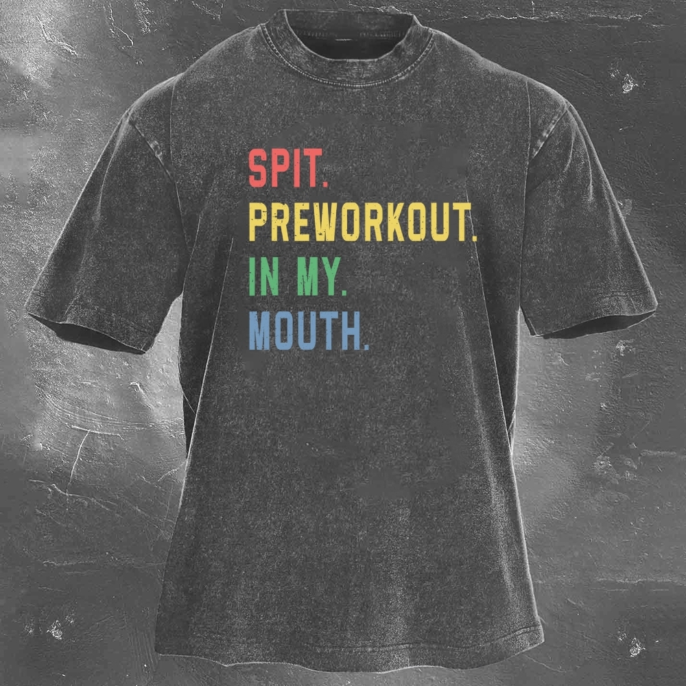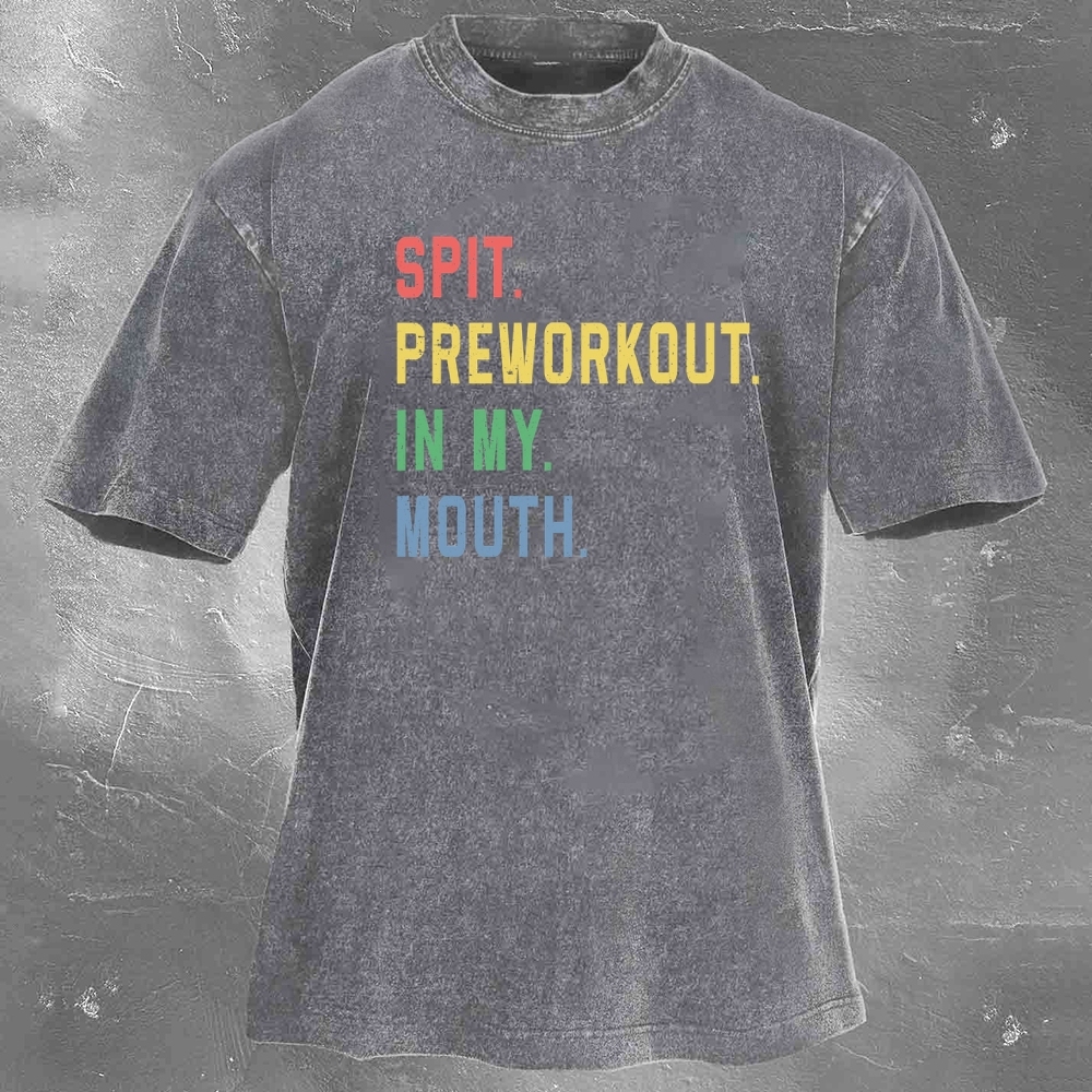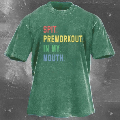 Fitness Print Pattern Washed Retro Casual T-Shirt 02