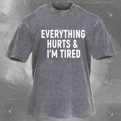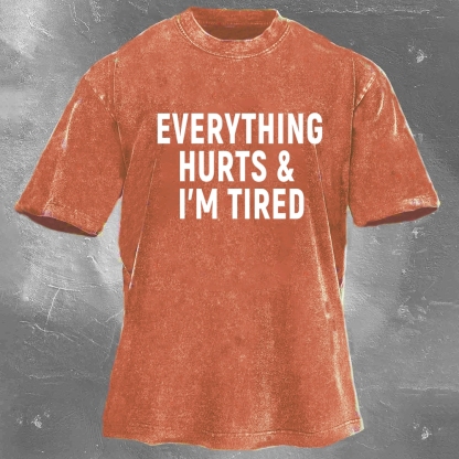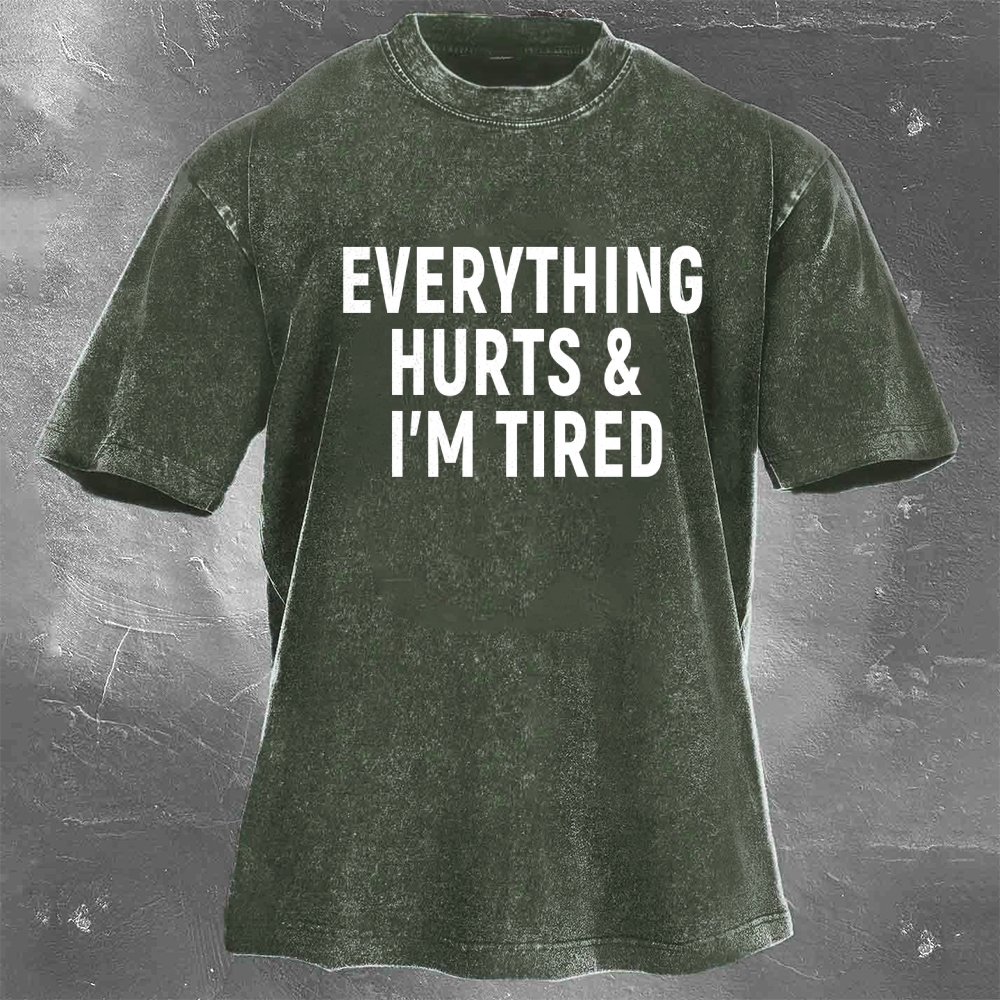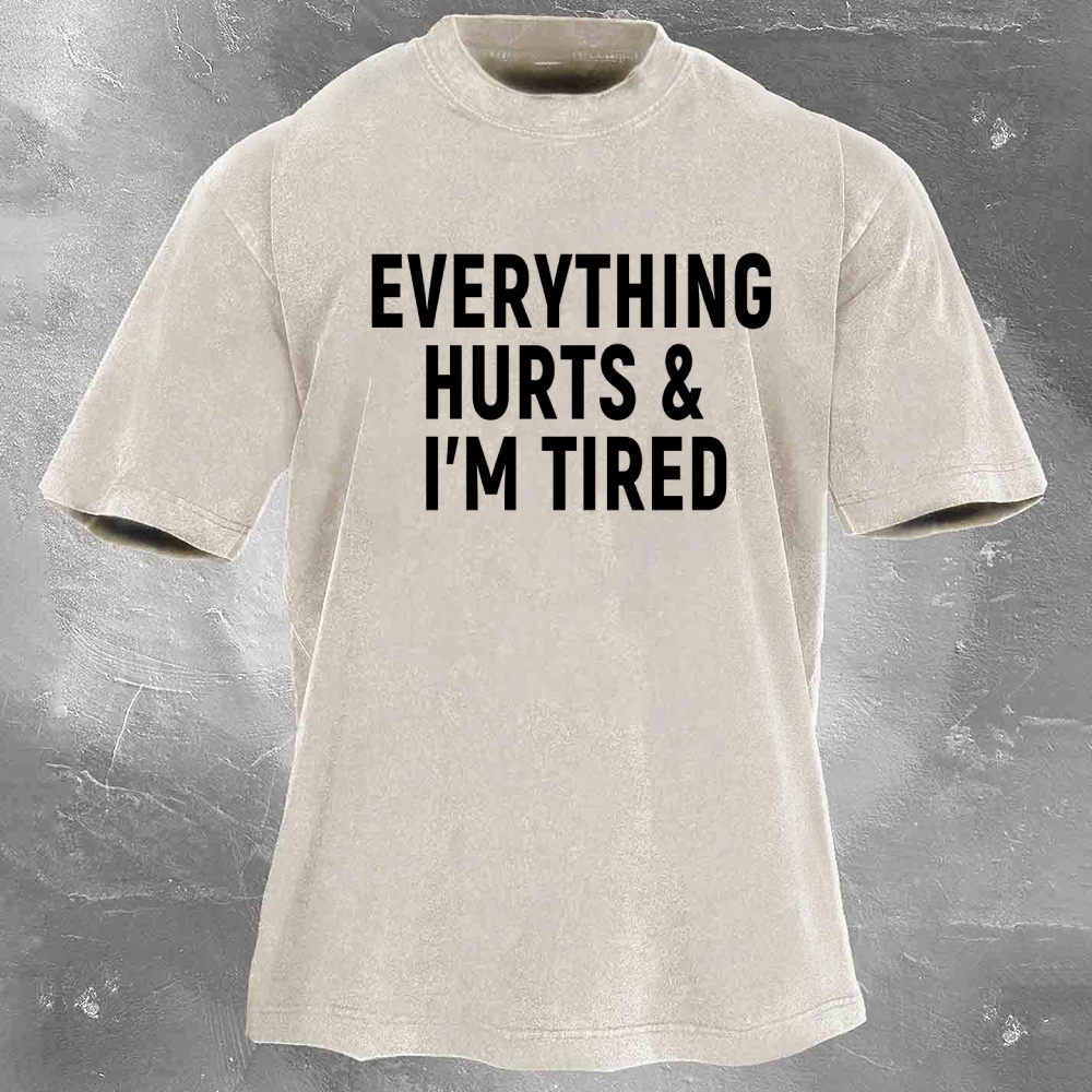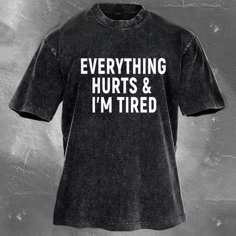 Fitness Print Pattern Washed Retro Casual T-Shirt 04