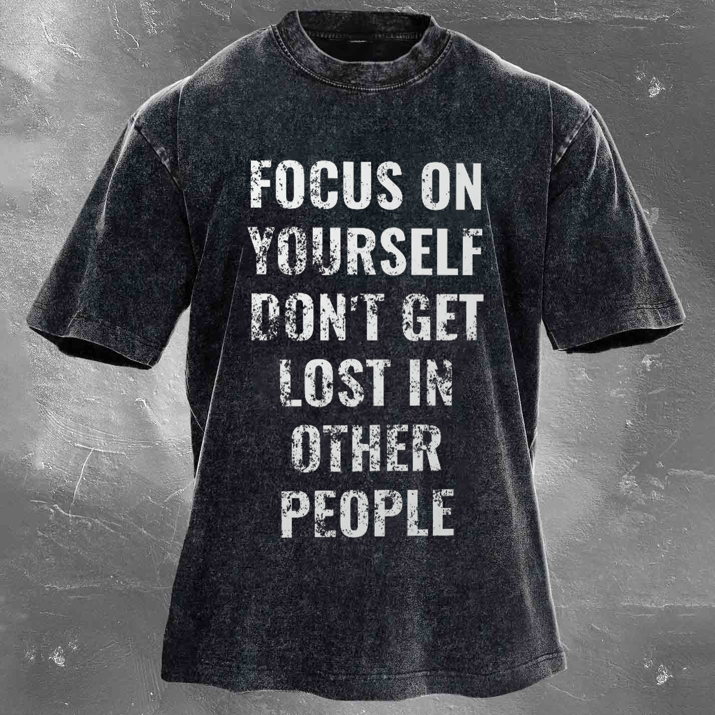 FOCUS ON YOURSELF DON'T GET LOST IR OTHER PEOPLE Men's washed T-shirt