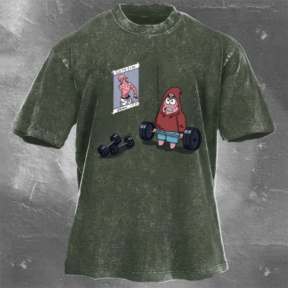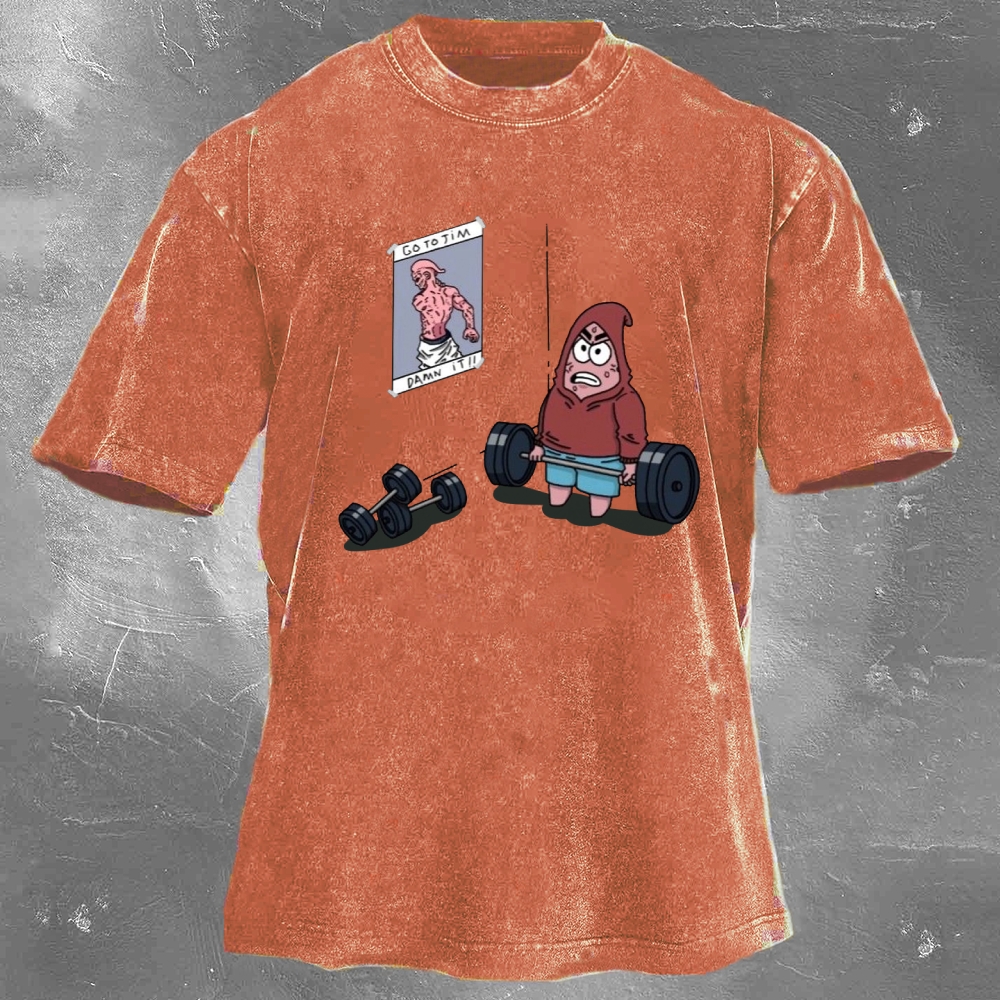 Go To Jim Cartoon Print Washed Retro Casual T-Shirt