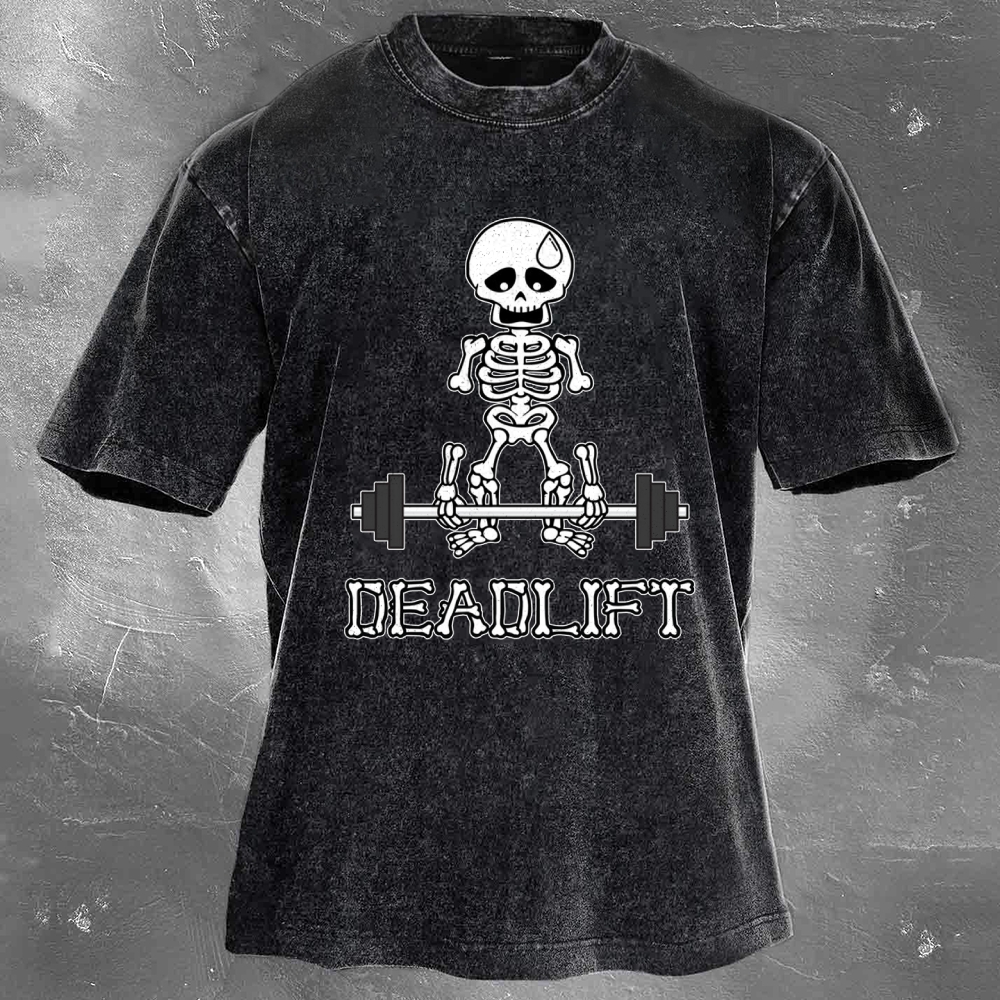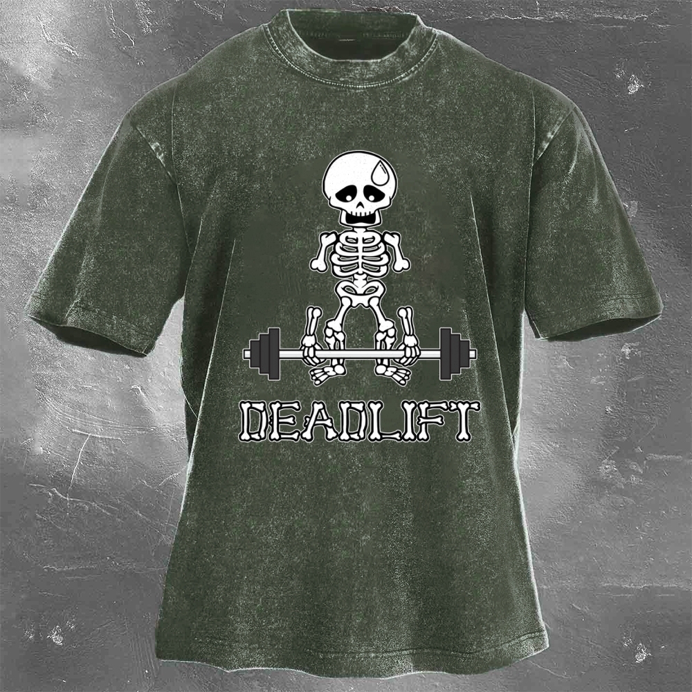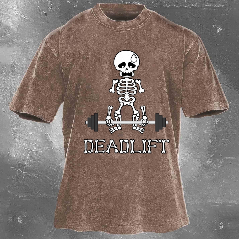 Halloween Fitness Pattern Print Washed Retro Casual T-Shirt 06