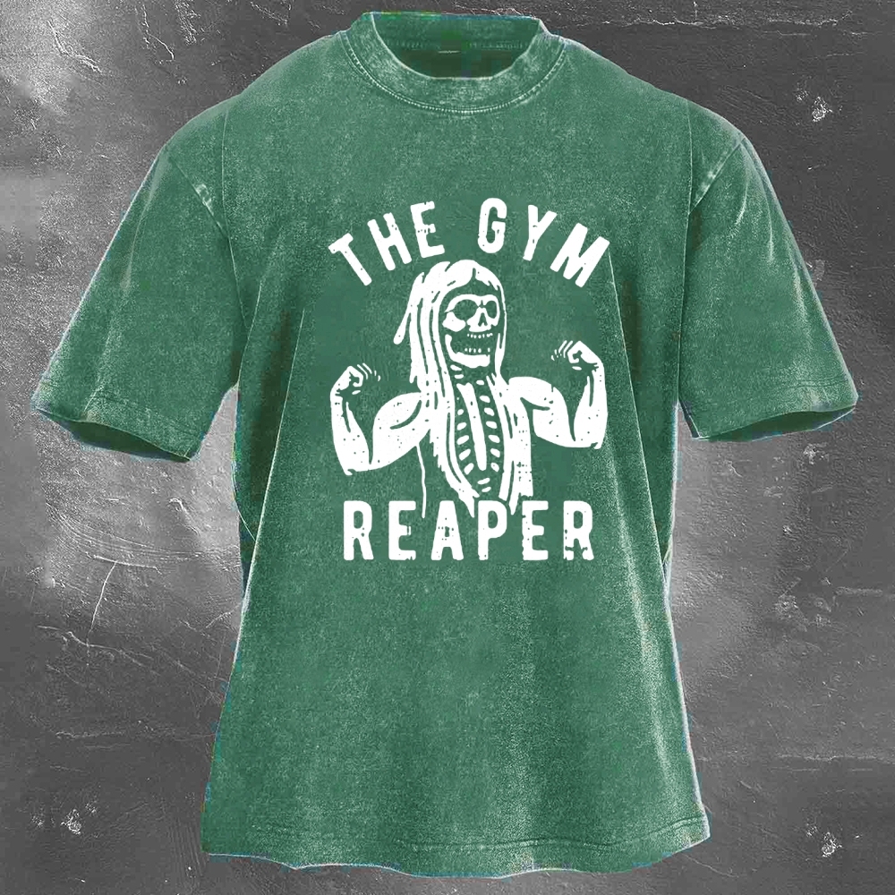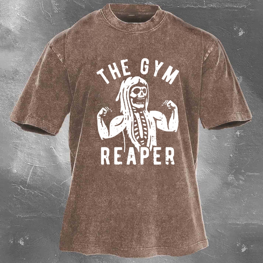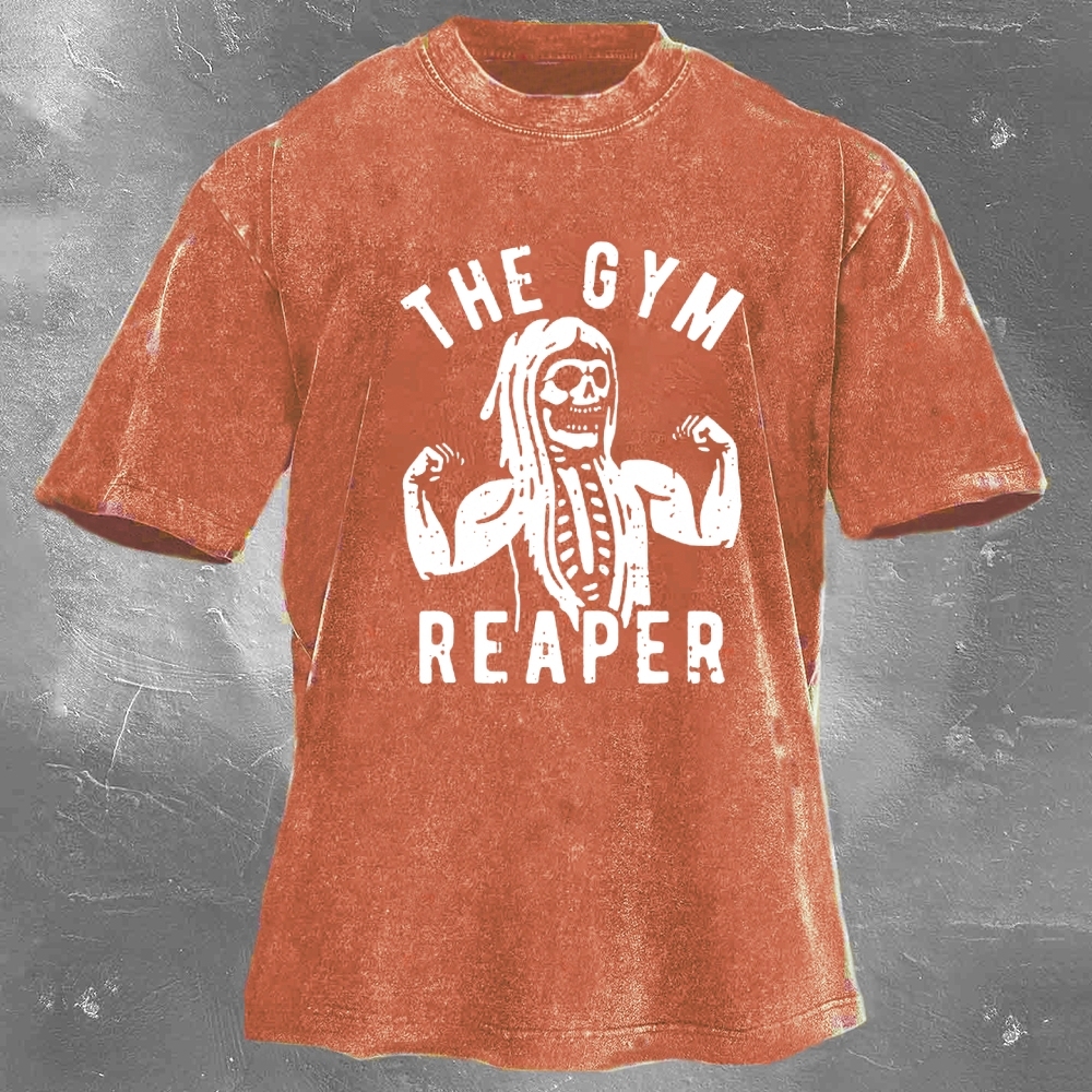 Halloween Fitness Pattern Print Washed Retro Casual T-Shirt 12