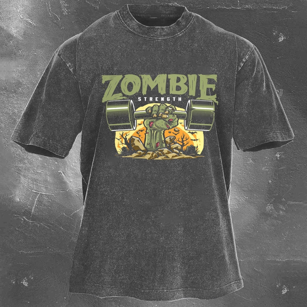Halloween Fitness Pattern Print Washed Retro Casual T-Shirt 15
