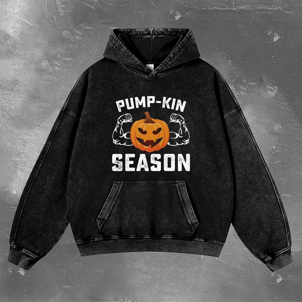 Halloween Pattern Print Retro Washed Hoodie 12