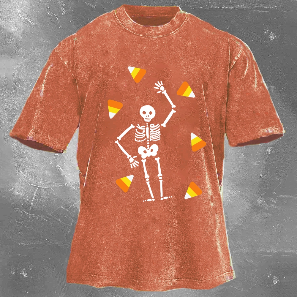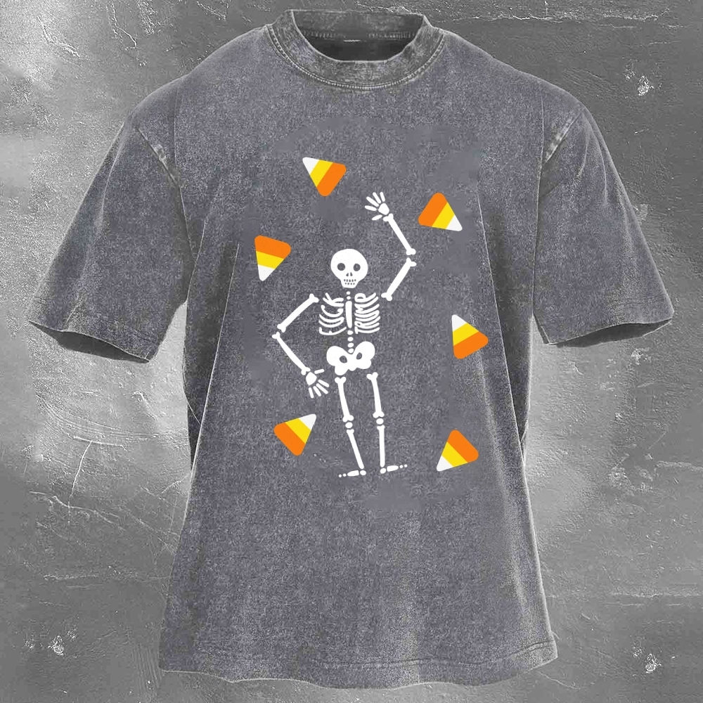 Halloween Pattern Printed Washed Retro Casual T-Shirt 02