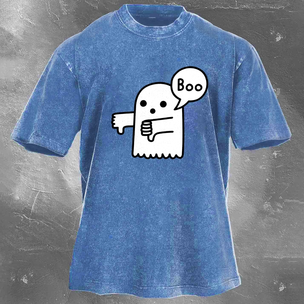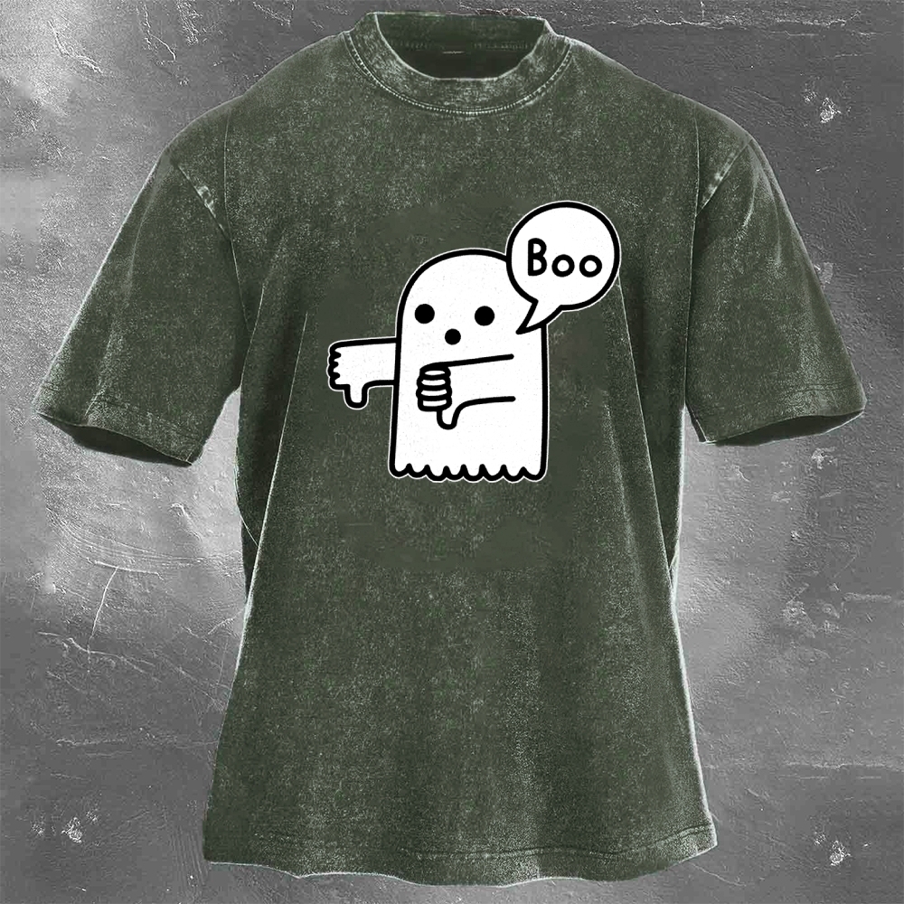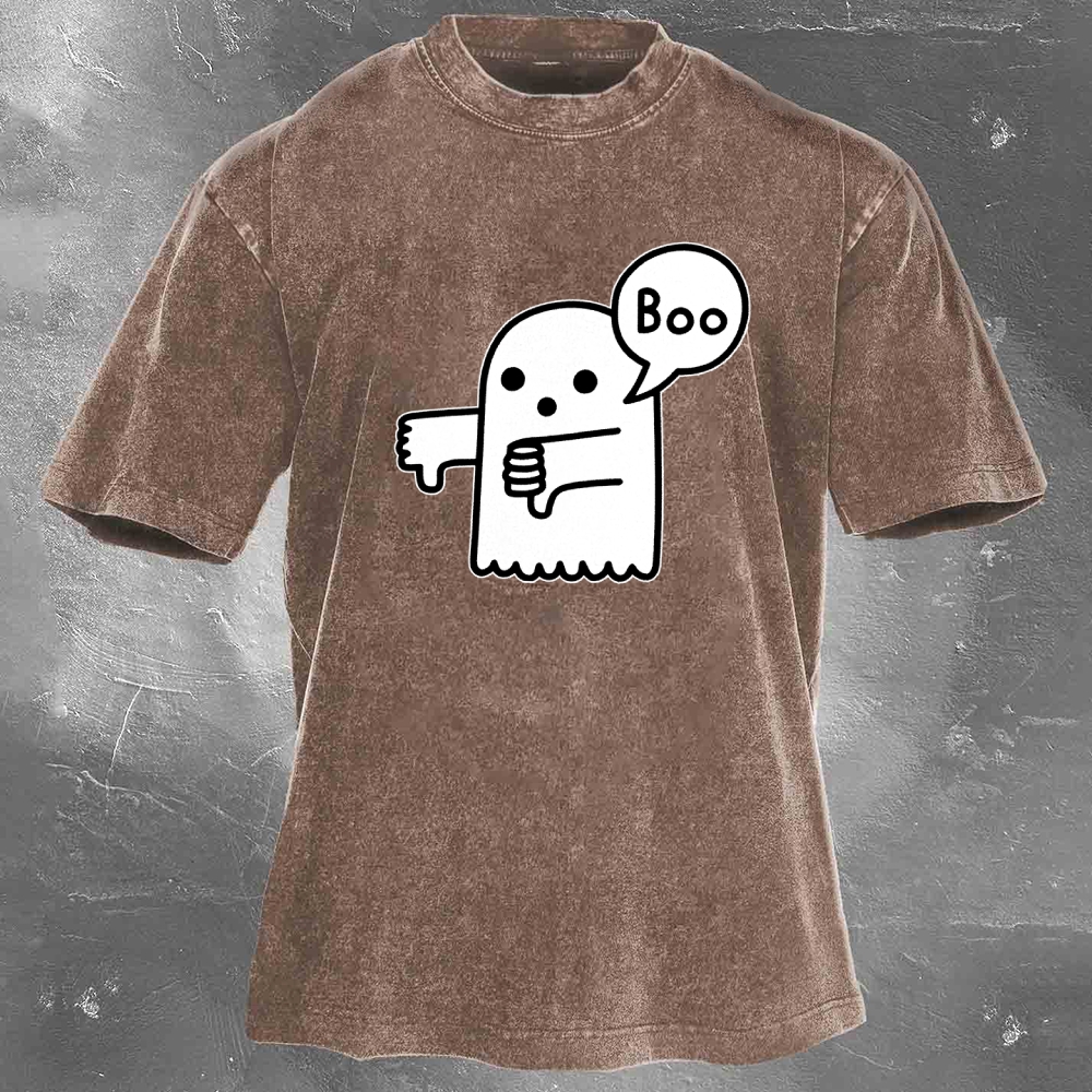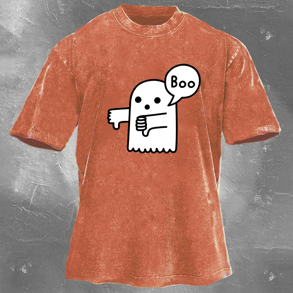 Halloween Pattern Printed Washed Retro Casual T-Shirt 04
