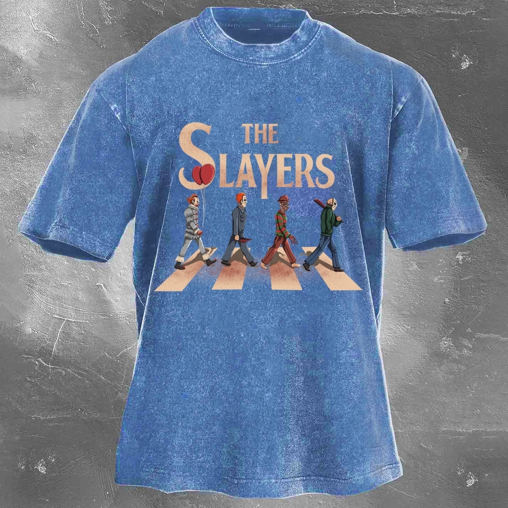 Halloween Pattern Printed Washed Retro Casual T-Shirt 08