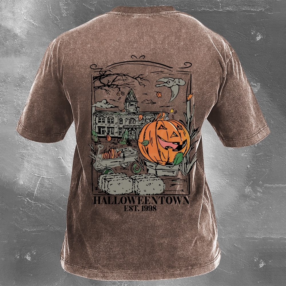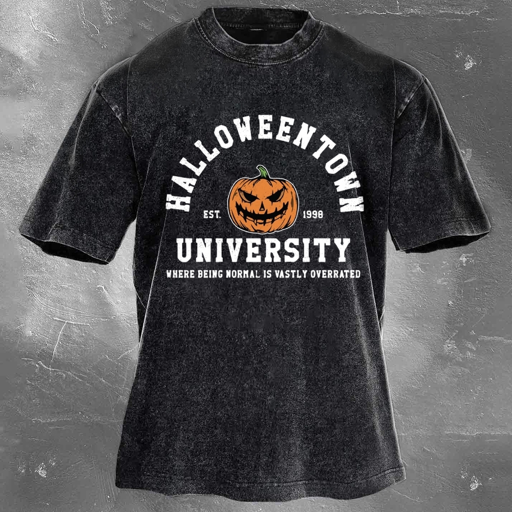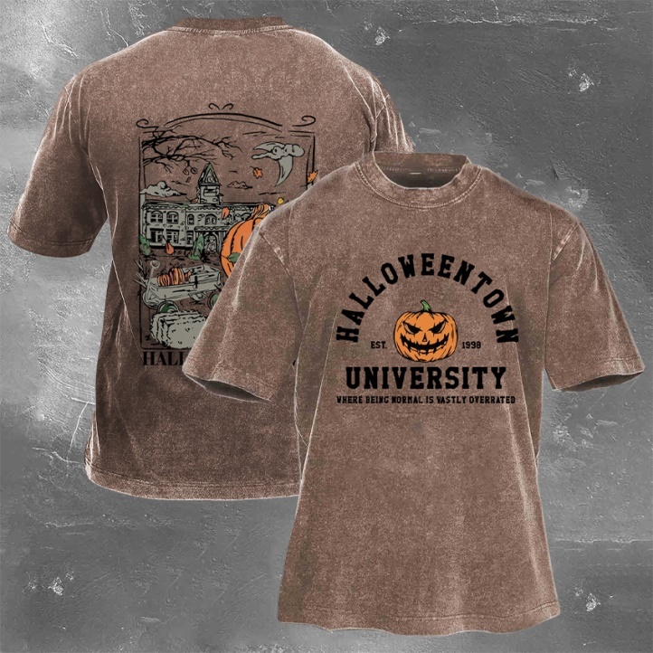 Halloween Pattern Printed Washed Retro Casual T-Shirt 12