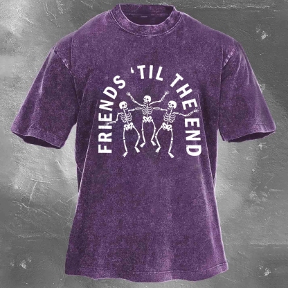 Halloween Pattern Printed Washed Retro Casual T-Shirt 18