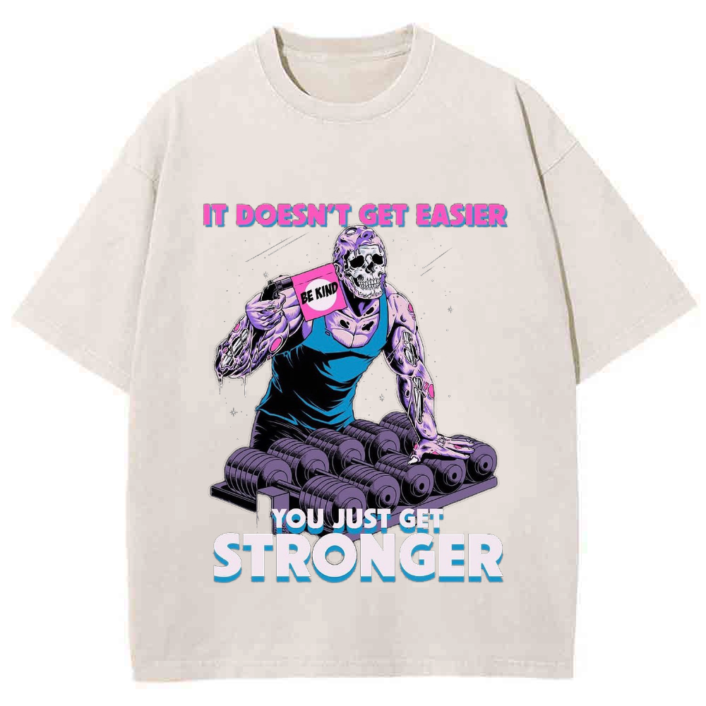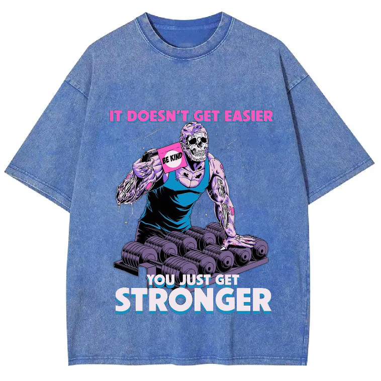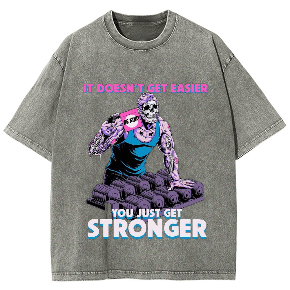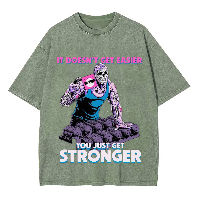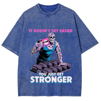 IT DOESN'T GET EASIER YOU JUST GET STRONGER Unisex Washed Crew Neck Short Sleeve T-Shirt